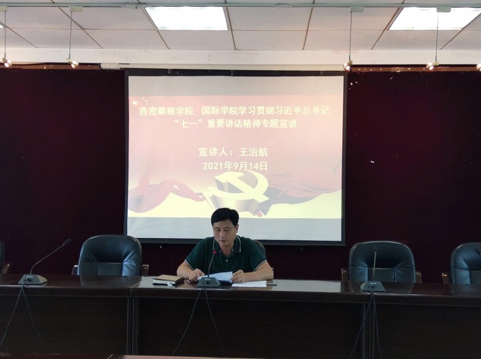 王治航从“深刻认识习近平总书记‘七一’重要讲话的历史性意义”、“深刻认识我们党创造的伟大成就,特别是党的十八大以来创造的新时代中国特色社会主义的伟大成就”、“深刻认识江山就是人民、人民就是江山,始终保持党同人民群众的血肉联系”等内容进行了深入宣讲。他指出,认真学习“七一”重要讲话精神是当前和今后一个时期重大政治任务,作为党史学习教育的核心内容,全体教职工要领悟其精神实质,把握其实践要求,从党的百年奋斗史中汲取前进的智慧和力量,不断增强“四个意识”、坚定“四个自信”、做到“两个维护”。
