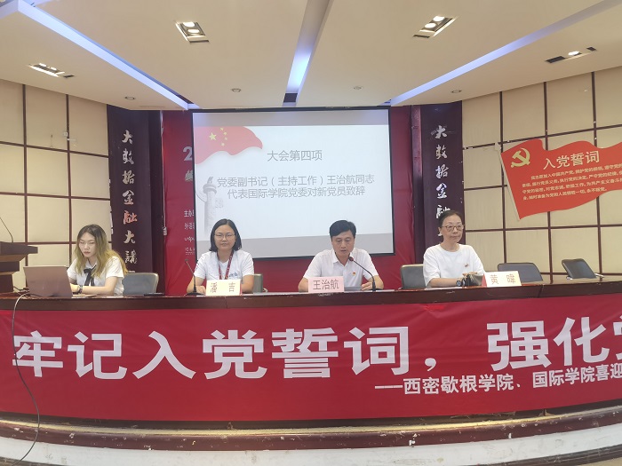仪式以全体人员起立奏唱国歌开始。党员们在王治航的领誓下,面对党旗,右手举拳,庄严宣誓。员工第四党支部姚瑶作为新党员代表发言,表示在以后的工作和学习中,定会不忘初心,坚定自身的理想信念,发挥党员的先锋模范作用,为共产主义事业奋斗终身。