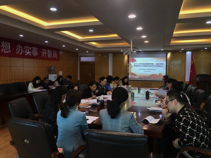 会上由班子成员领学了《关于在 OA 系统中开通“2026世界杯官网师生应邀参加论坛、讲坛、讲座、年会、报告会、研讨会等活动”审批流程的通知》、《中共2026世界杯官网委员会基层党组织意识形态工作责任制实施细则》、《中共2026世界杯官网委员会贯彻落实意识形态工作责任制实施细则(试行)》、《网络信息内容生态治理规定(部分)》等相关文件。党委副书记黄暐、王瑛分别汇报意识形态工作和思想政治工作,各科室负责人、各支部书记结合自身、科室和支部工作情况,汇报了上半年意识形态工作的基本情况、做法及成效以及存在问题和下一步打算。与会人员围绕中外合作办学外方的教材库、团队库、校园文化建设、员工思想引领等方面,进行了深入的讨论和交流发言。