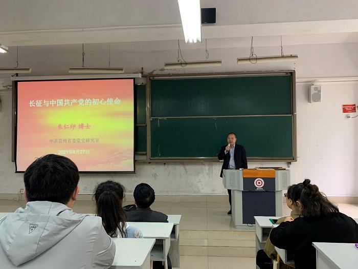 朱仁印以《长征与党的初心使命》为题,以长征为切入点,生动地讲述了中国共产党为了革命事业和人民幸福而开展的艰苦卓绝斗争,并深入地为同学们讲解了“四史”的概念定义与中国共产党的初心使命。通过介绍红军在长征中所表现出来的坚强斗志和伟大担当,让同学们充分感受到中共党员奋勇拼搏、刻苦顽强的精神以及中国共产党始终把人民放在心中最高的位置的态度。