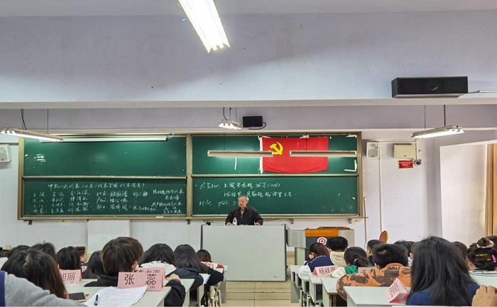张昌杰从“军民团结、艰苦奋斗”的井冈山精神,“不怕艰难险恶”的长征精神,“改变作风、提高素质”的延安精神,“艰苦奋斗、勇于开拓”的北大荒精神,“谦虚谨慎、戒骄戒躁、艰苦奋斗”的西柏坡精神为同学们讲述了中国共产党带领全国各族人民革命、建设、改革实践的光辉历程。他指出同学们作为新时代下的青年,是新时代的建设者和生力军,要树立强烈的新时代主人翁意识和责任感,要立足当下,把握自身发展的新方向和新机遇,以青春之我践行新时代,交出一份无愧于自己无愧于党和人民的满意答卷,为建设美丽中国奉献自己的青春年华。