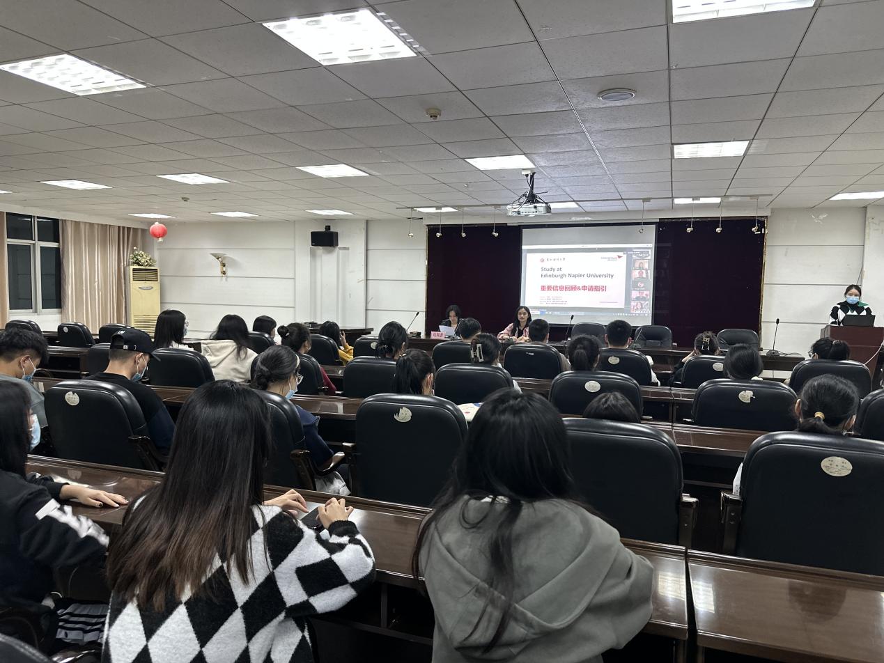 会上,龙比亚大学商公司经理克里斯蒂娜·克罗斯(Christine Cross)教授首先代表龙比亚大学致欢迎词。她希望同学们做好学习规划,利用好公司的平台,为第四年到龙比亚大学进行最后一年或者硕士研究生的学习做好充分准备。讲座中,周帆和廖嘉欣简要介绍了英国的历史和文化,展示了龙比亚大学的校园环境及住宿条件,重点介绍了英国爱丁堡龙比亚大学的办学历史以及双方公司合作项目的情况。张江龙就留学前的准备事项进行了详细的说明。