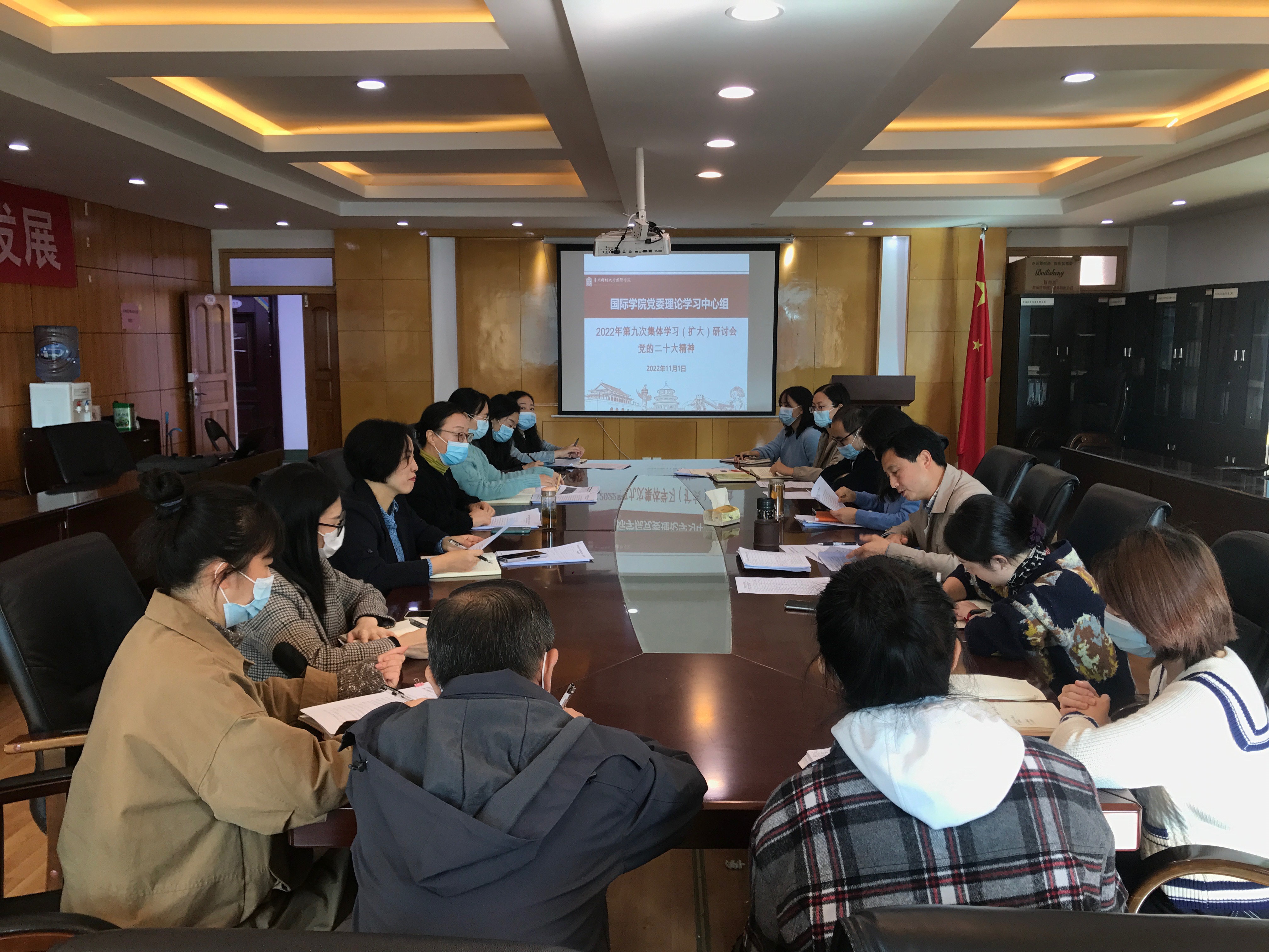王治航指出,要深刻领会把握党的二十大精神的丰富内涵,深刻领会大会提出的一系列新思路、新战略、新举措,深刻把握新时代新征程的使命任务,紧紧围绕党的中心任务来研究、谋划,推进各项工作,特别是要推进党建工作提质增效、国际化办学提质增量,努力推进公司实现高质量发展。同时,就下一阶段工作提出三点要求:一是要深入学习领会党的二十大精神的精髓要义。要以贯彻落实党的二十大精神为主线,坚定不移把党的全面领导落到实处,始终在政治立场、政治方向、政治原则、政治道路上同以习近平同志为核心的党中央保持高度一致,在忠诚拥护“两个确立”、坚决做到“两个维护”上见行见效;二是要迅速把思想和行动统一到党的二十大精神上来,掀起学习宣传贯彻党的二十大精神的热潮,加强宣传报道,通过各种学习形式深刻领悟党的二十大精神,把深入学习宣传贯彻落实党的二十大精神作为当前和今后一段时期首要政治任务;三是要把党的二十大作出的重大决策部署付诸行动、见之于成效。要坚持用习近平新时代中国特色社会主义思想指导办学治院各项工作,制定具体方案、明确责任分工,确保党的二十大精神在公司落地生根。