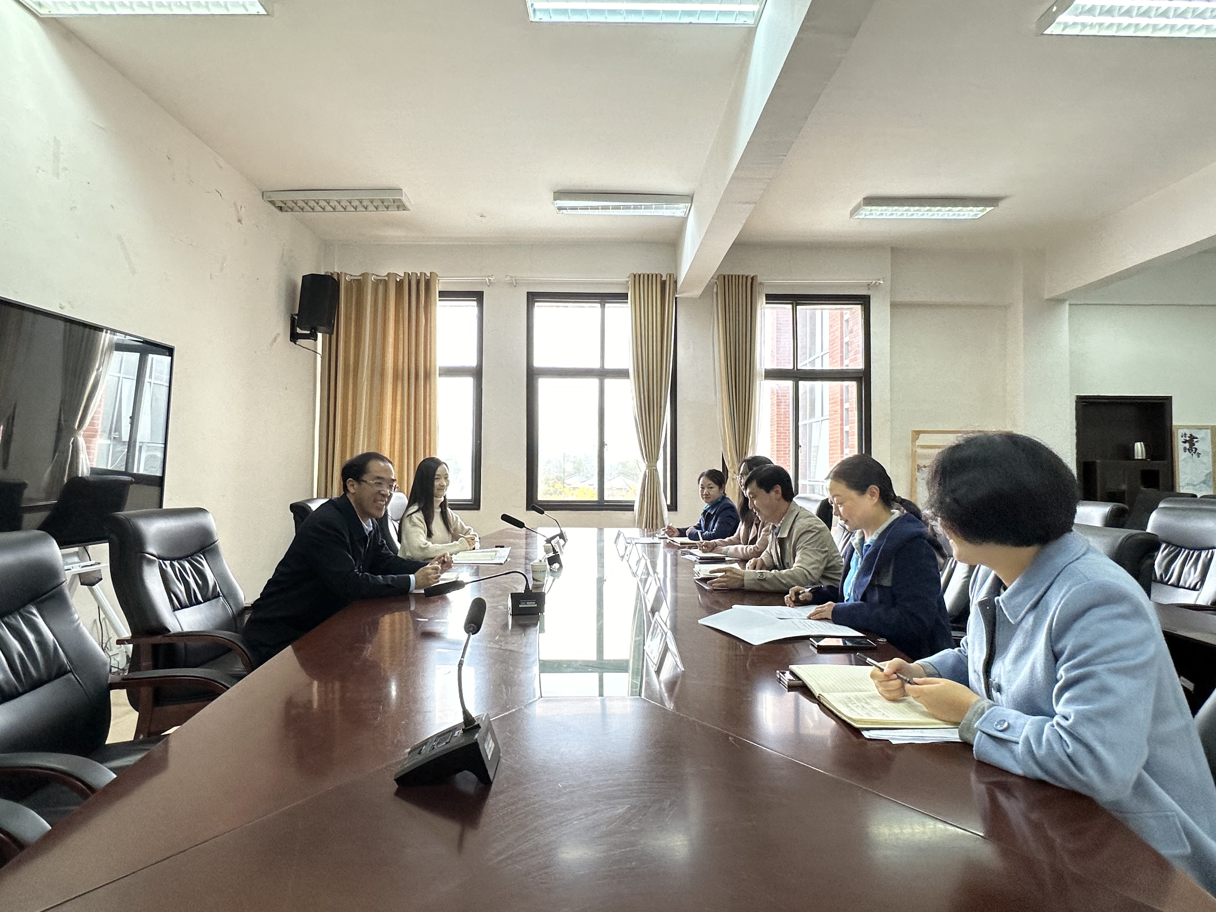 座谈会上,王治航、罗亚围绕提升国际化办学水平,努力建设特色鲜明的2026年国际足联世界杯,从公司基本情况、党建工作成效、干部队伍建设、中外合作办学建设、人才培养、员工管理、教务管理、外教管理和公司发展存在的困难以及下一步的发展目标等进行了汇报。