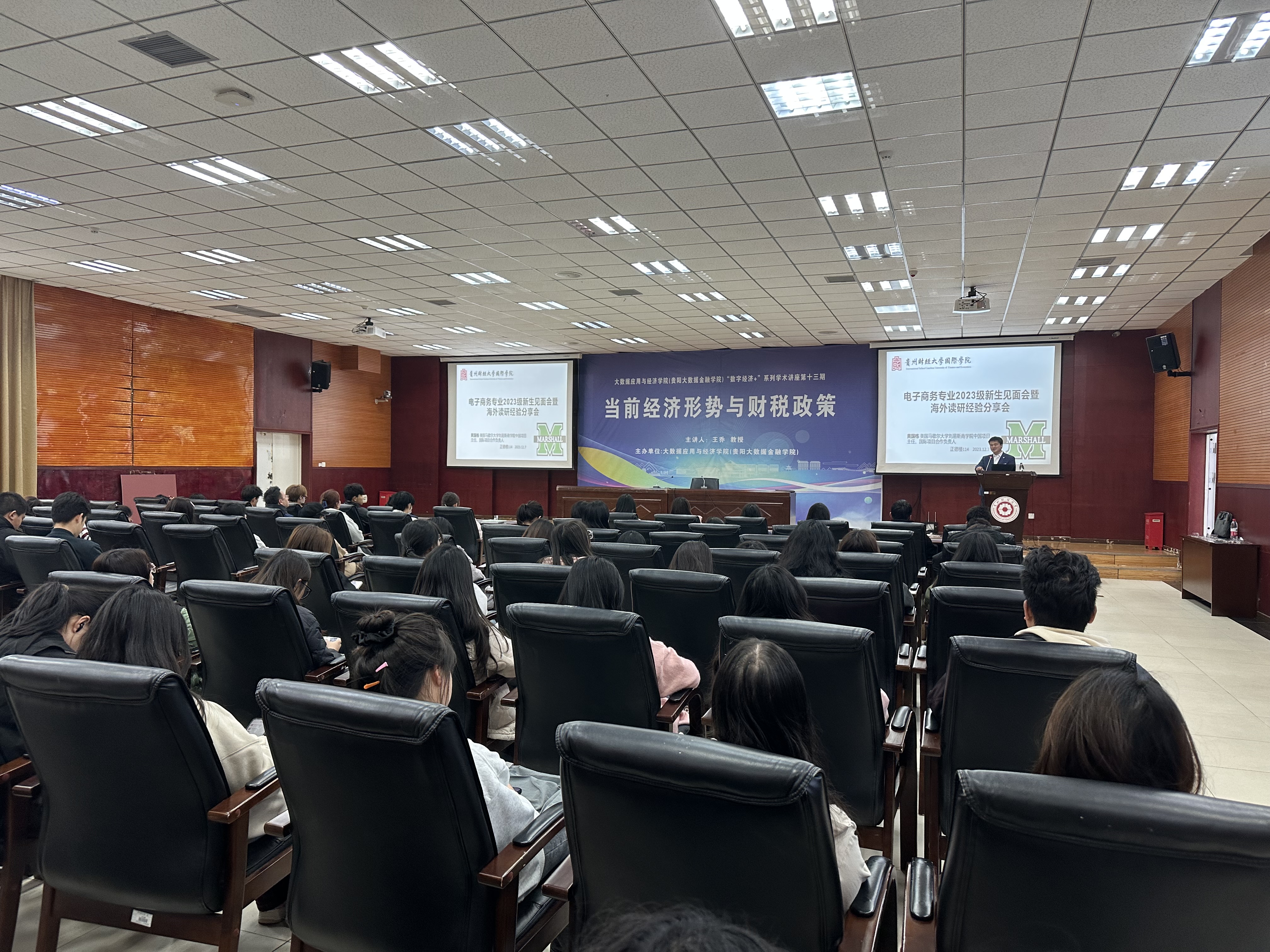 在大一新生见面会暨海外读研经验分享会上,黄国栋作为主讲人与近120名新生分享了自己的留学经历,为他们提供了宝贵的建议。通过分享经验,他帮助员工更好地准备和规划出国留学,并为他们提供了关于申请流程、签证办理、住宿选择等方面的详细指导。