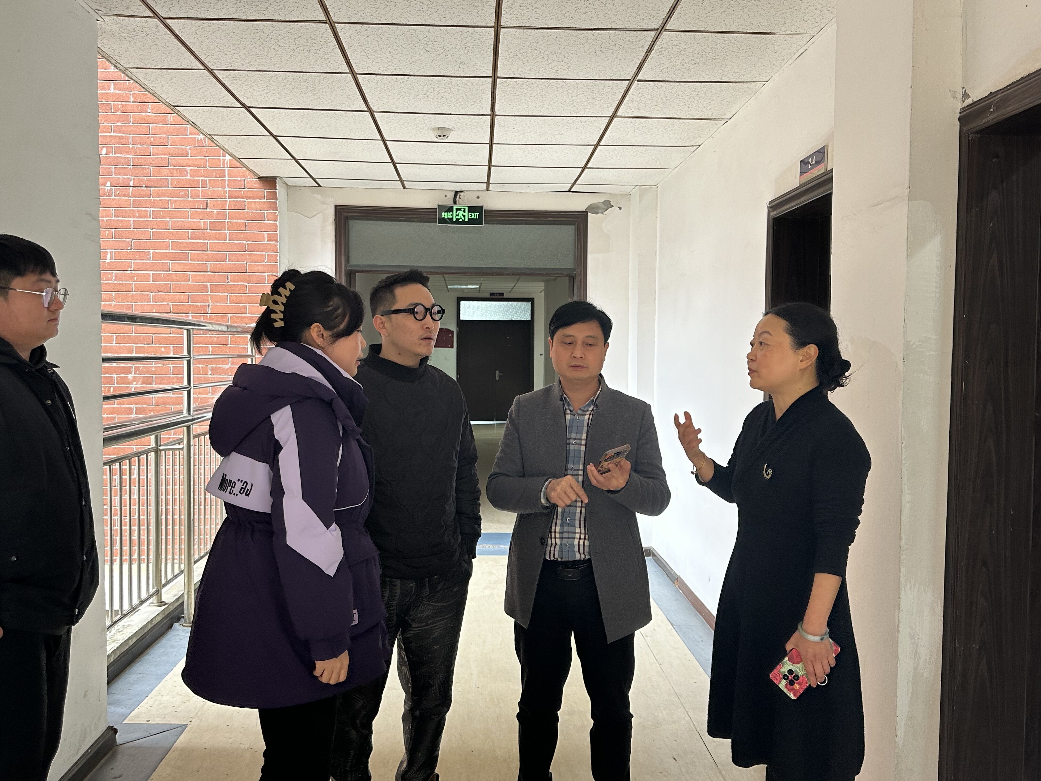 会后,杨龙一行前往西区博学楼进行搭建新媒体电商孵化基地办公区域实地选址考察。
