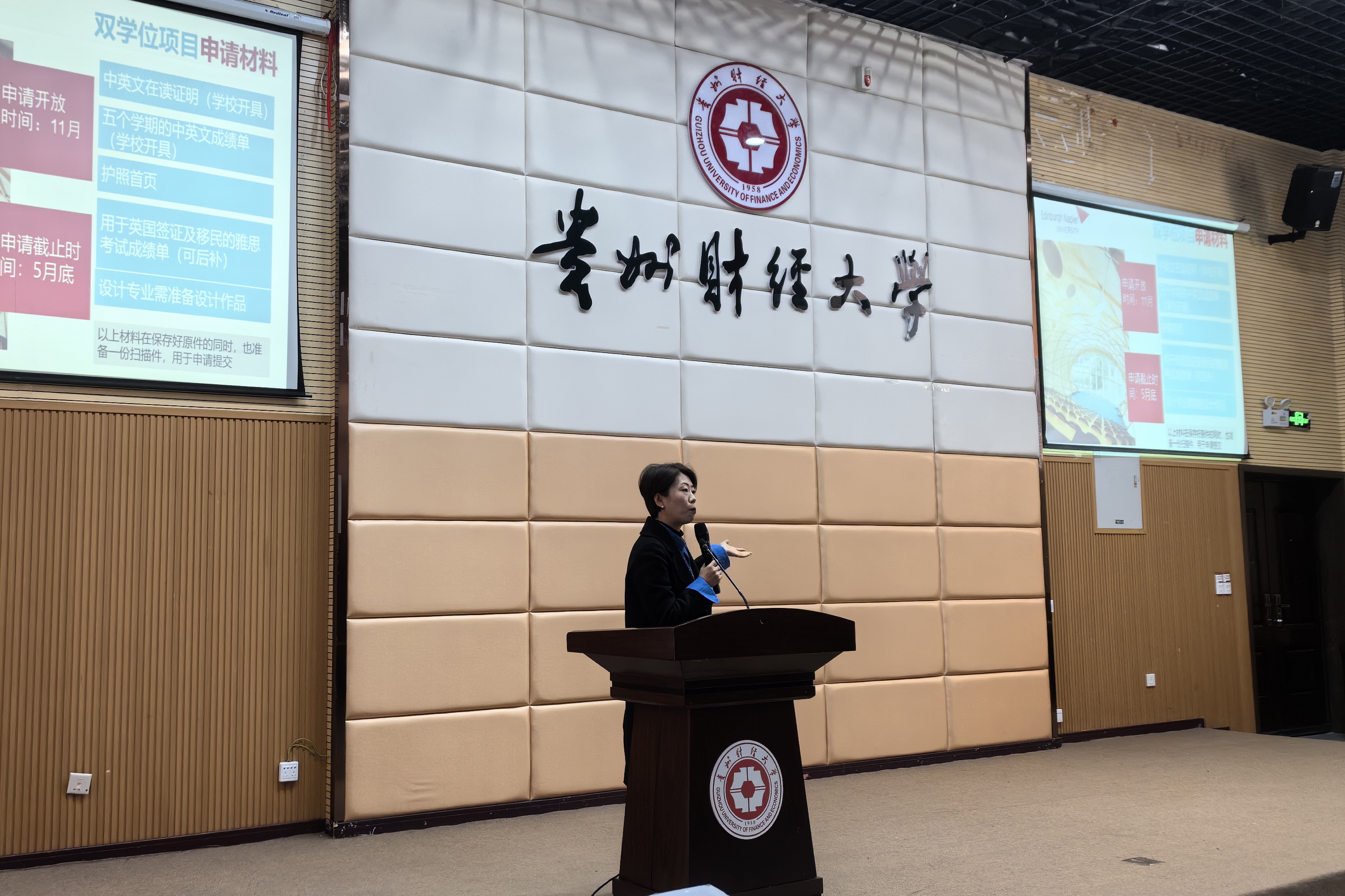 廖嘉欣从地理、历史、人文风情和经济发展四个方面介绍了苏格兰爱丁堡城市概况,并详细介绍了爱丁堡龙比亚大学的办学历史、特色学科及知名教授,对其最新发展愿景进行展望。高级项目专员李安安就留学的入学申请、签证办理及抵达英国办理入学手续等三个方面进行介绍,并对学习成绩、外语能力等留学条件做了进一步说明。