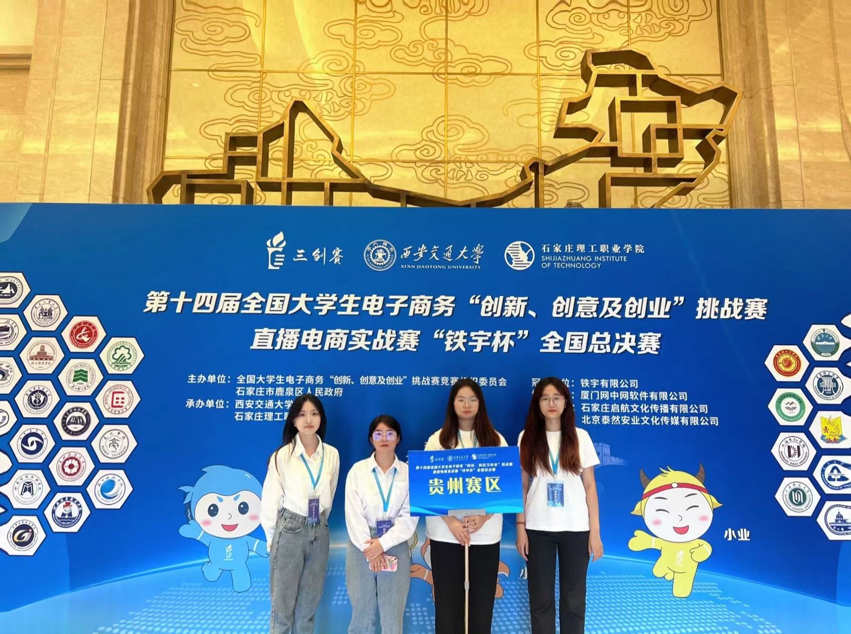 在直播电商实战赛“铁宇杯”全国总决赛中,各参赛团队需在赛事指定产品池中的商品作为推广产品,通过短视频创作,直播带货等方式开展实战。在直播电商实战赛道,公司员工江世意(团队成员)、鲁昕辰(团队成员)等同学的参赛作品《黔货创享--老员工助力黔货出山》获得一等奖。