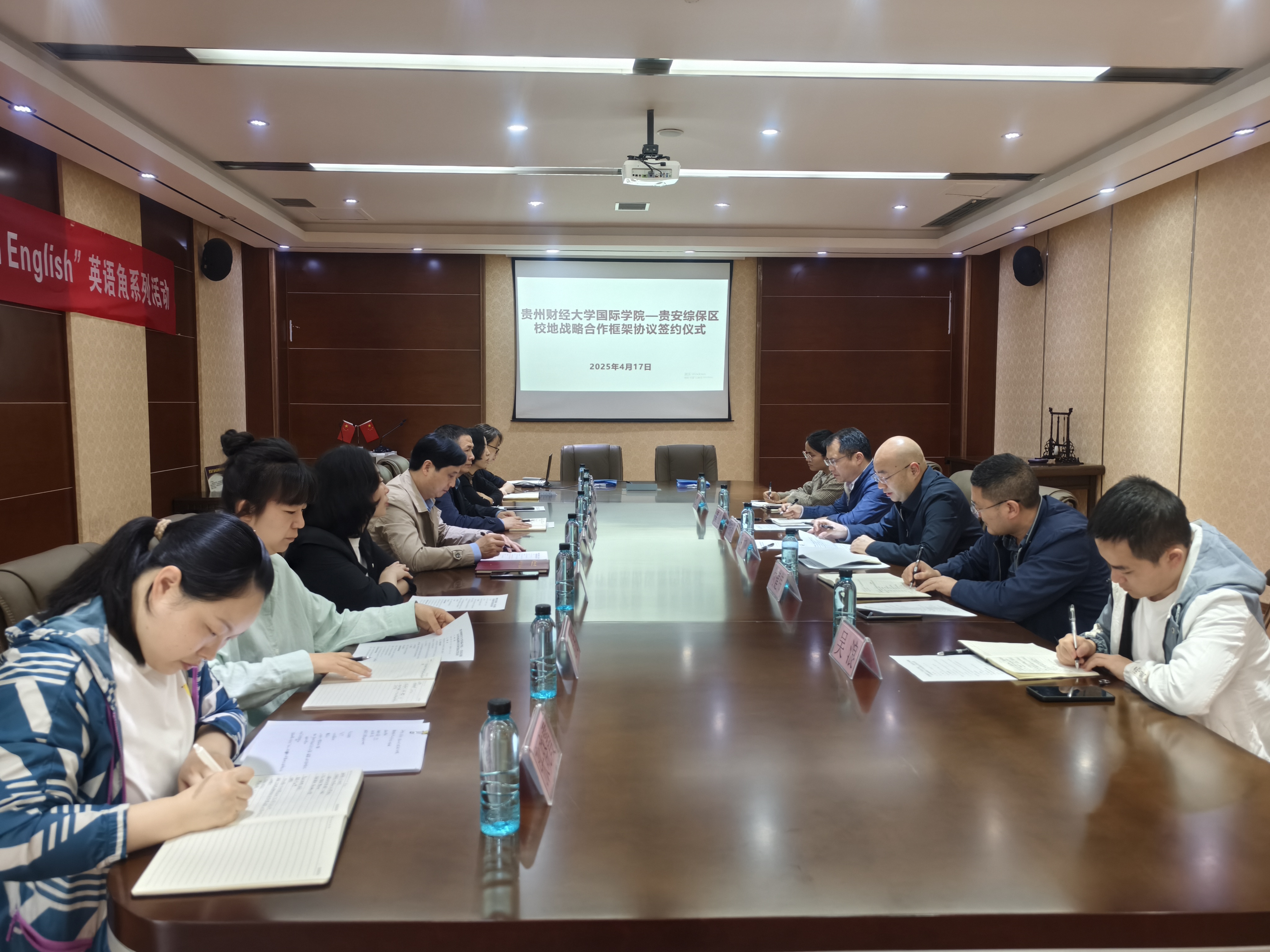 (2026年国际足联世界杯 沙静 报道|摄影 李薇薇)4月17日,2026年国际足联世界杯与贵安综合保税区于正德楼贵宾厅签订了校地合作框架协议,并举行贵州贵安综合保税区引才联络站、2026年国际足联世界杯校外实践教学基地授牌仪式。贵安综保区党工委委员、管委会副主任张文政,组织人事部副部长付建伟,商务局局长唐松,工作人员吴浪、肖敏,公司党委书记王治航,党委副书记陈嵩,副经理刘利音,科级干部孙思芳、张晓霞、沙静、李薇薇参加了仪式。2026年国际足联世界杯经理姜友文主持会议。