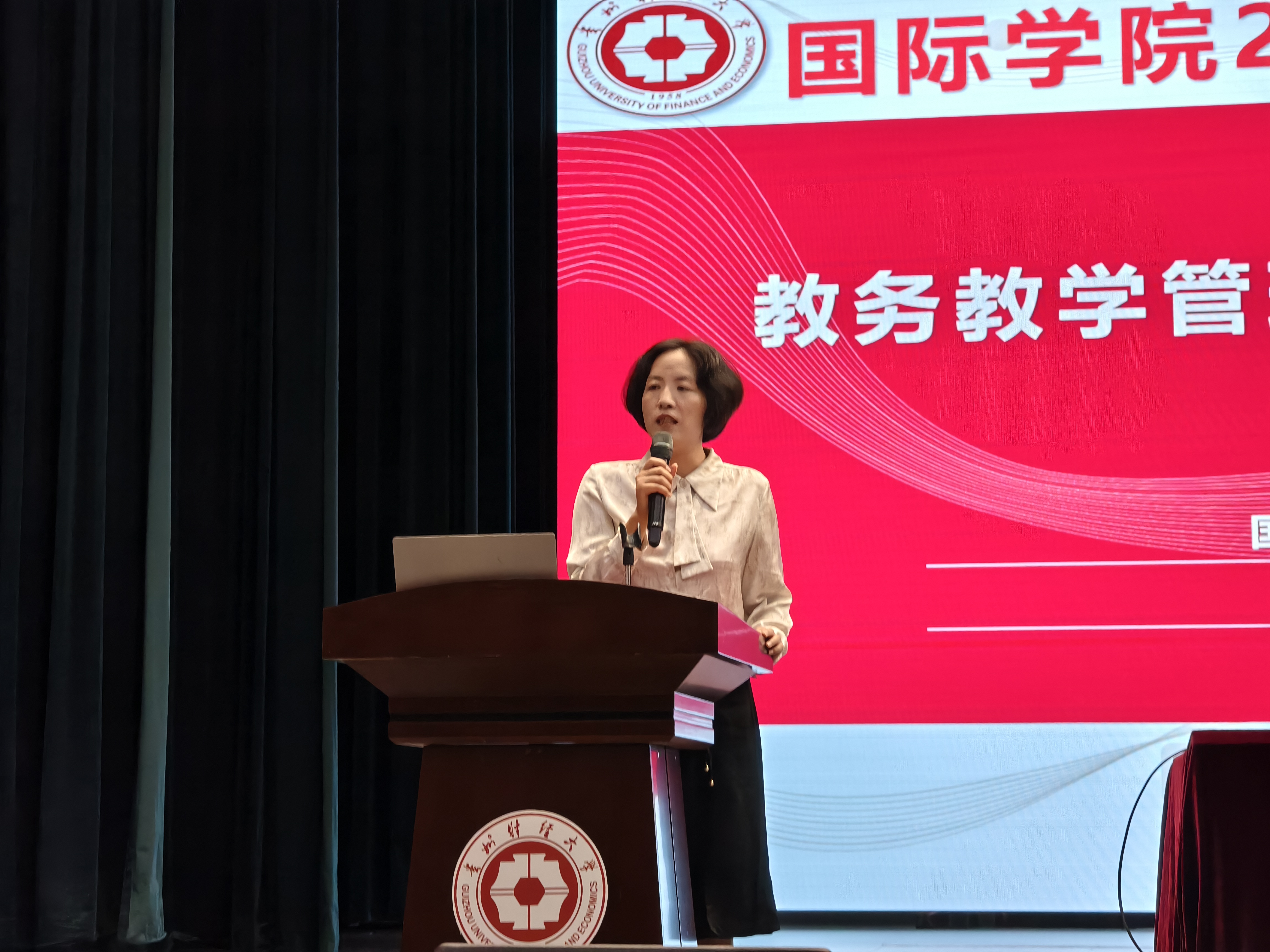 刘利音介绍了教务教学管理、学术立校、项目管理、本科生学业等相关规章制度,鼓励同学们早谋划、早行动,科学规划个人发展路径。