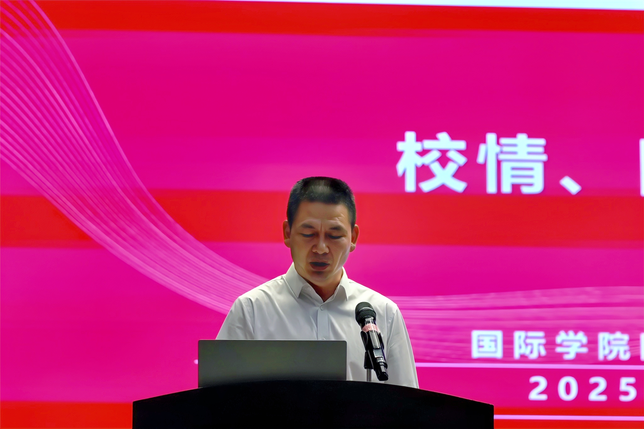 姜友文介绍公司和公司发展历程、国际化办学特色及人才培养成果。向同学们详细介绍了公司和公司的历史和发展现状。勉励新生珍惜时光、树立理想,积极参与国际交流与实践,成为具有国际化视野和跨文化交流能力的高素质人才。