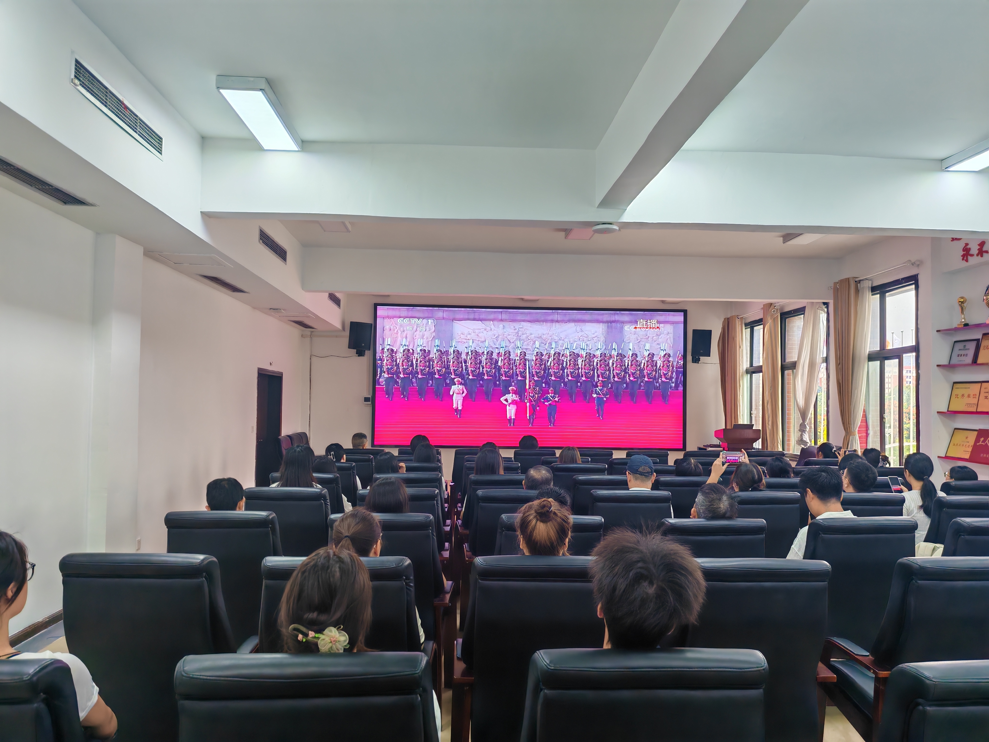 整个观看过程秩序井然、气氛热烈,师生们的爱国热情被彻底点燃,民族自豪感油然而生。通过集中观看这场盛会,回顾历史、展望未来,深刻体会到今天的和平来之不易。大家纷纷表示以此次观看学习为新的起点,增强党性修养和爱国情怀,在各自的岗位奋勇前进,为实现中华民族伟大复兴的中国梦贡献自己的力量。