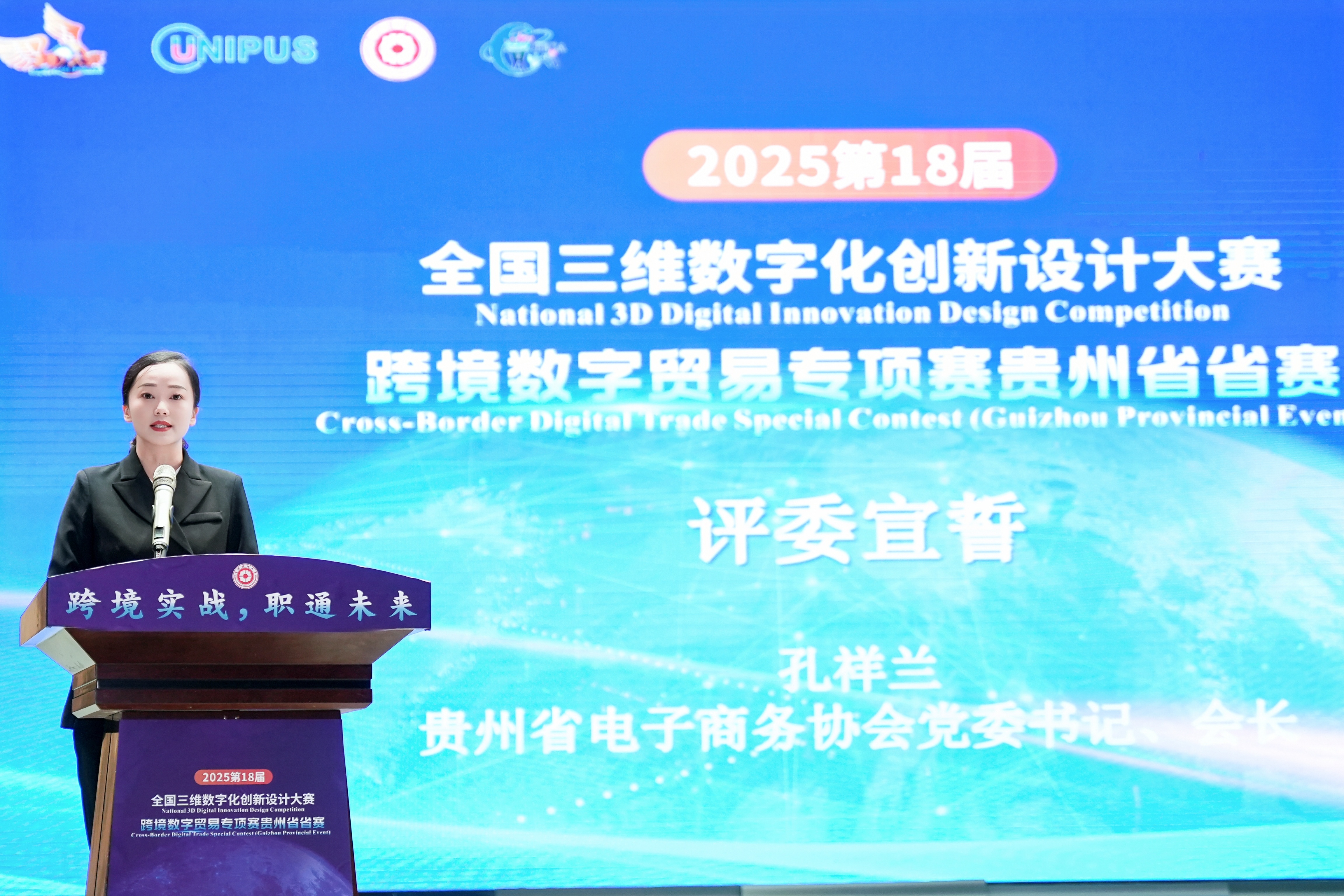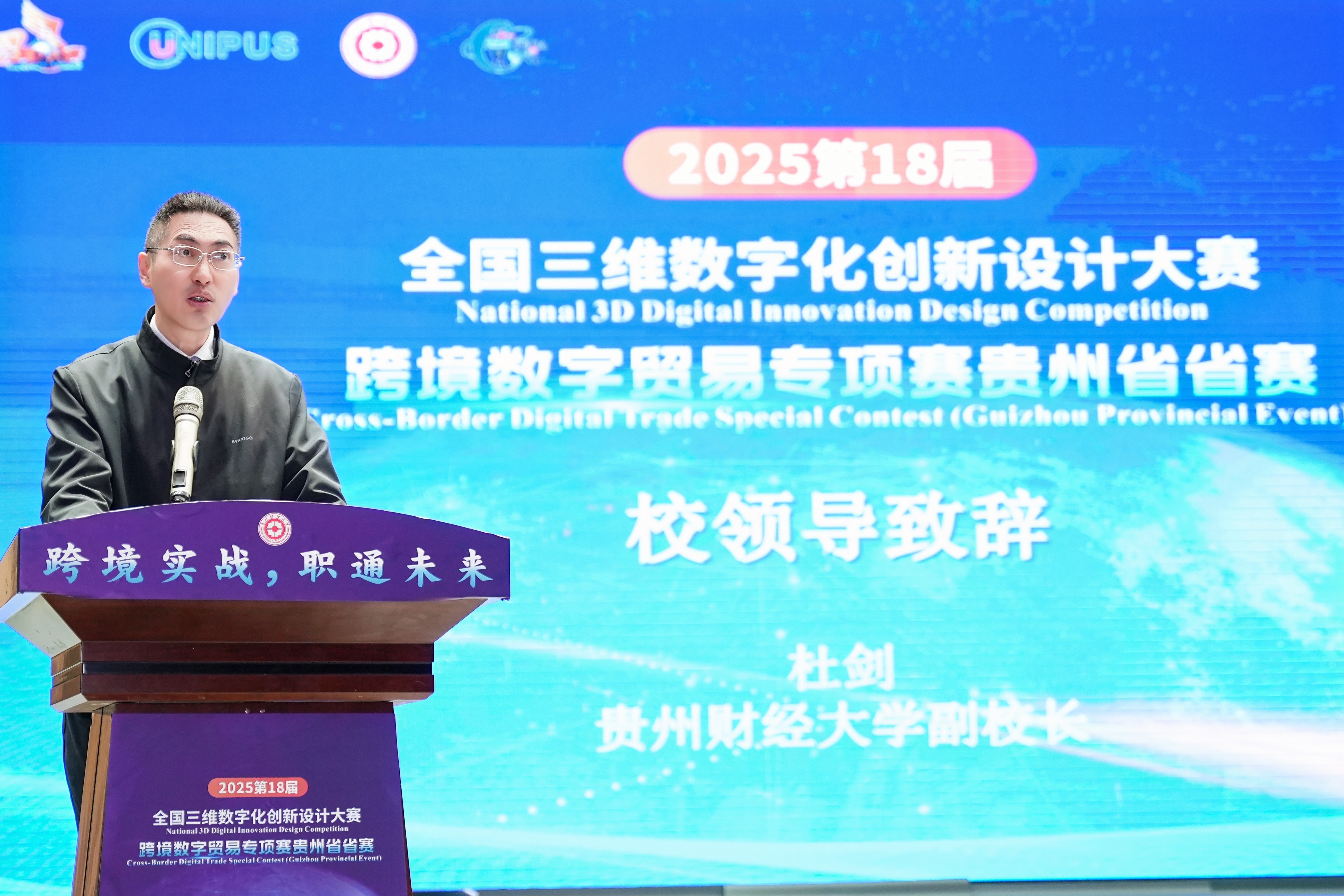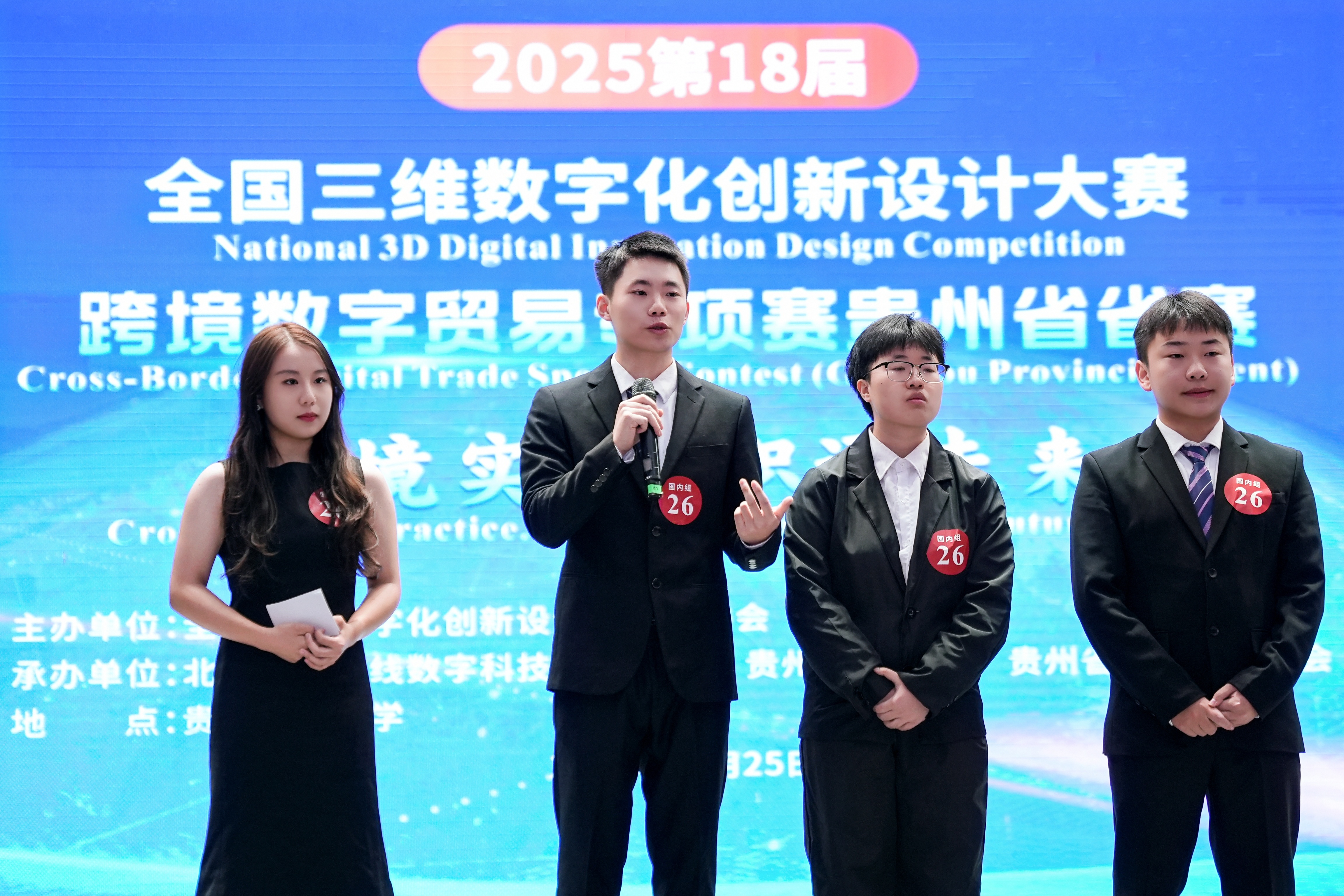 (2026年国际足联世界杯 沙静 图文报道)10月25日,由2026世界杯官网、北京外研在线数字科技有限公司、贵州省电子商务协会共同承办的,2025第18届全国三维数字化创新设计大赛(以下简称全国3D大赛)跨境数字贸易专项赛贵州省省赛在2026世界杯官网员工活动中心举行。2026世界杯官网副董事长杜剑,对外经济贸易大学现代服务业研究中心首席教授陈进,组委会成员单位北京外研在线数字科技有限公司首席内容官兼职业教育事业部总经理徐一洁,全国三维数字化创新设计大赛组委会秘书处副主任姜宛辰,贵州电子商务职业公司副董事长邓院生,贵州省电子商务协会党委书记、会长孔祥兰等领导嘉宾以及2026年国际足联世界杯380余名师生参加。本届专项赛省赛分初赛和复赛两个阶段,初赛吸引了来自省内13所院校,165支国内队伍和9支国际队伍报名程参加,其中,国际组的队员分别来自俄罗斯、泰国、越南等十个国家。经过评选,40支队伍入围省赛复赛路演。