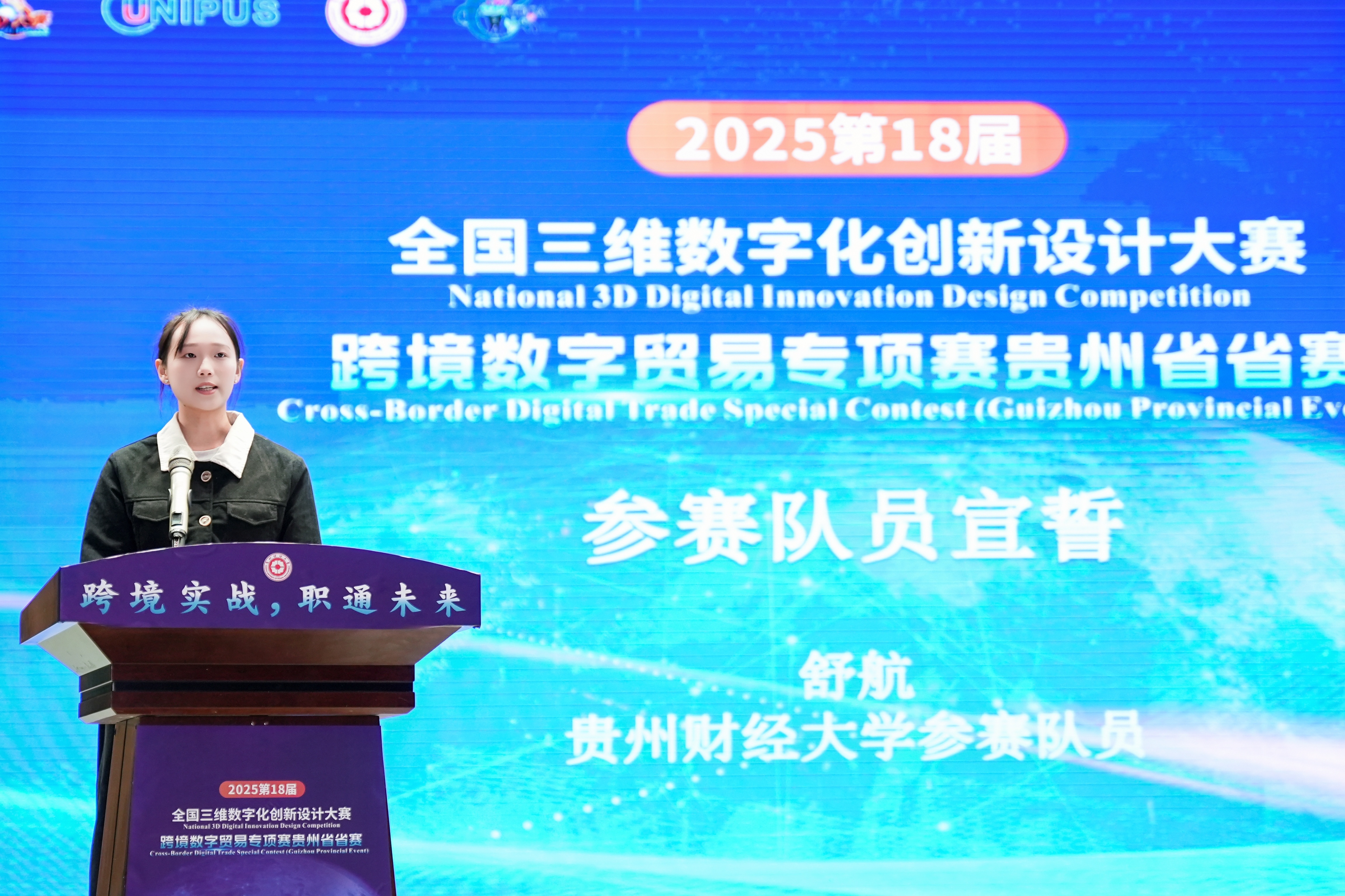 此次大赛的成功举办,旨在深入贯彻党的二十大报告发展数字贸易建设的精神,不仅为贵州省高校学子提供了一个展示数字化创新与实践能力的平台,更是深化产教融合、链接国际资源、服务地方经济高质量发展的一次生动实践。它必将进一步点燃青年学子的创新创业热情,为数字中国建设和跨境电子商务的蓬勃发展持续注入蓬勃的青春动能,构筑贸易强国的国际竞争新优势。