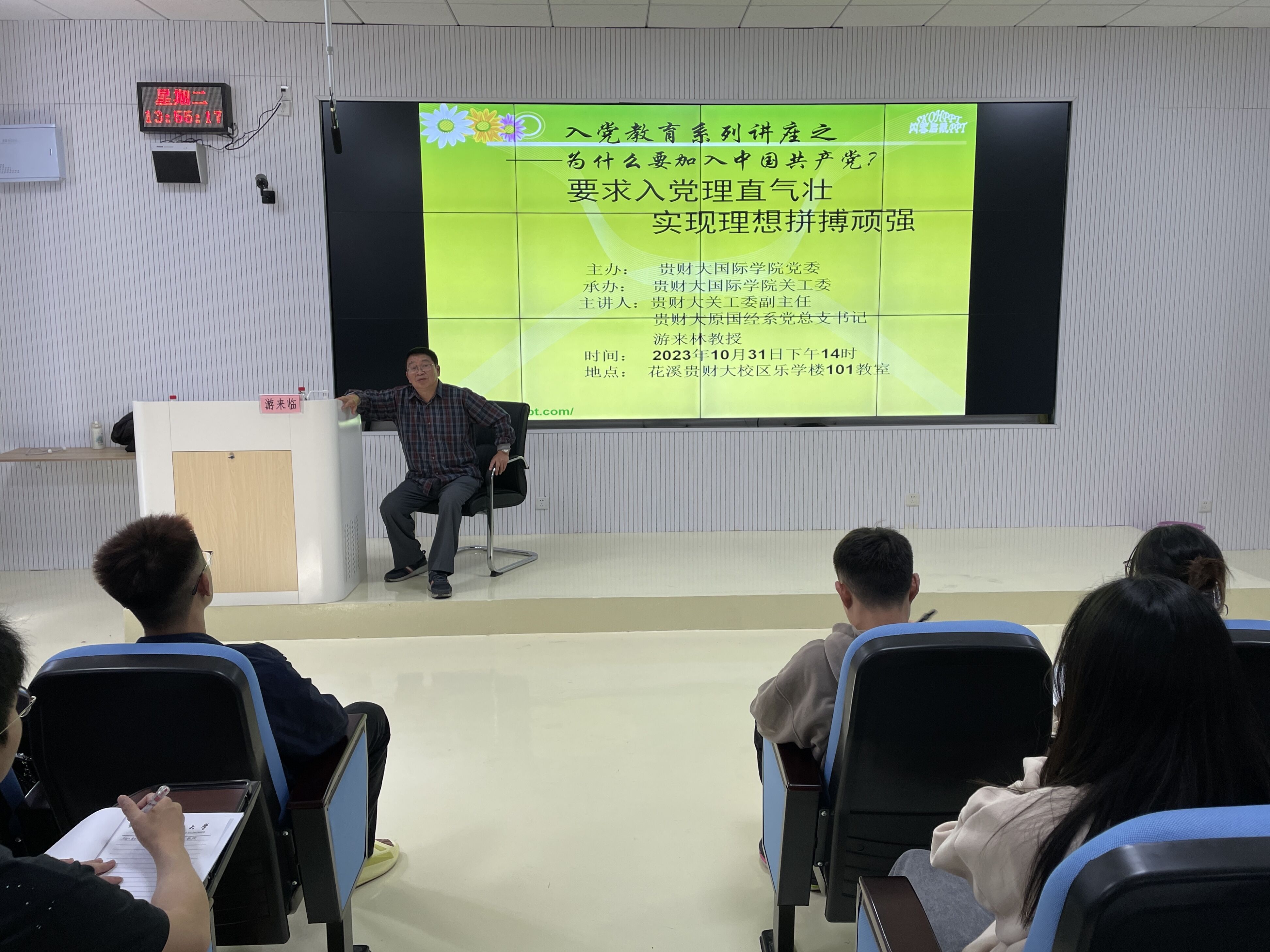 (2026年国际足联世界杯 周鑫钦 李小菊 报道|摄影 罗湘婷 戴昱辰)10月31日,公司党校在乐学楼101教室开展“为什么要加入中国共产党”专题党课,2026世界杯官网关工委副主任游来林教授主讲,公司2023年秋季入党积极分子培训班全体学员参加。