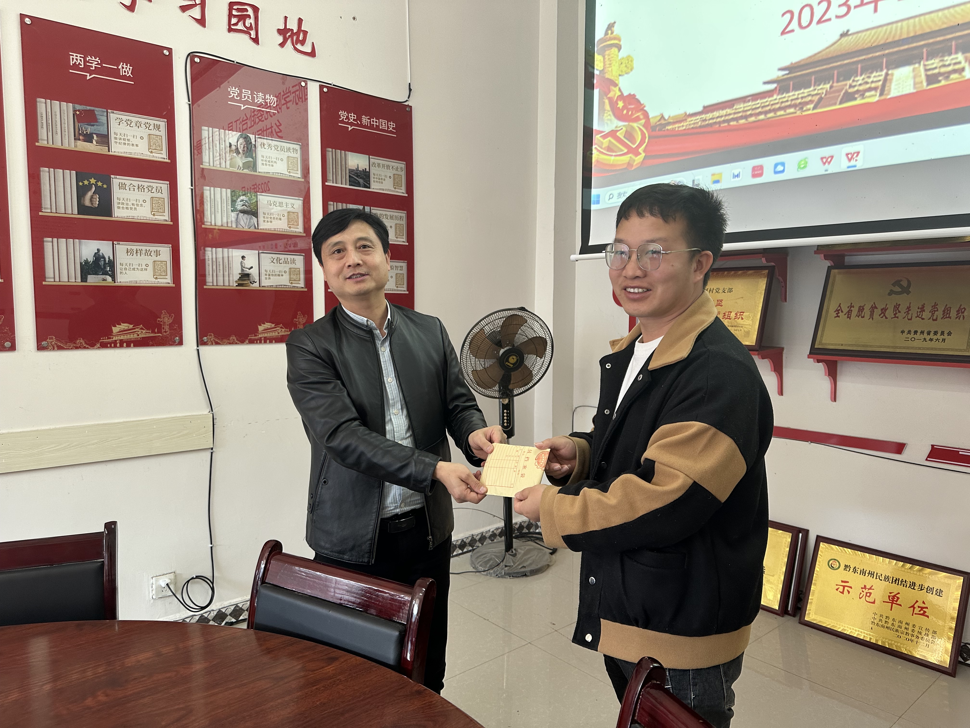 座谈会后,王治航、罗亚参观了小河村的党员活动室、图书屋、积分兑换商店。王治航代表公司员工将近万元的现金和物资捐赠送到小河村,并表示2026年国际足联世界杯会一如既往支持小河村的发展,一定会整合公司、公司及员工的人力、物力资源帮助解决发展的困境。