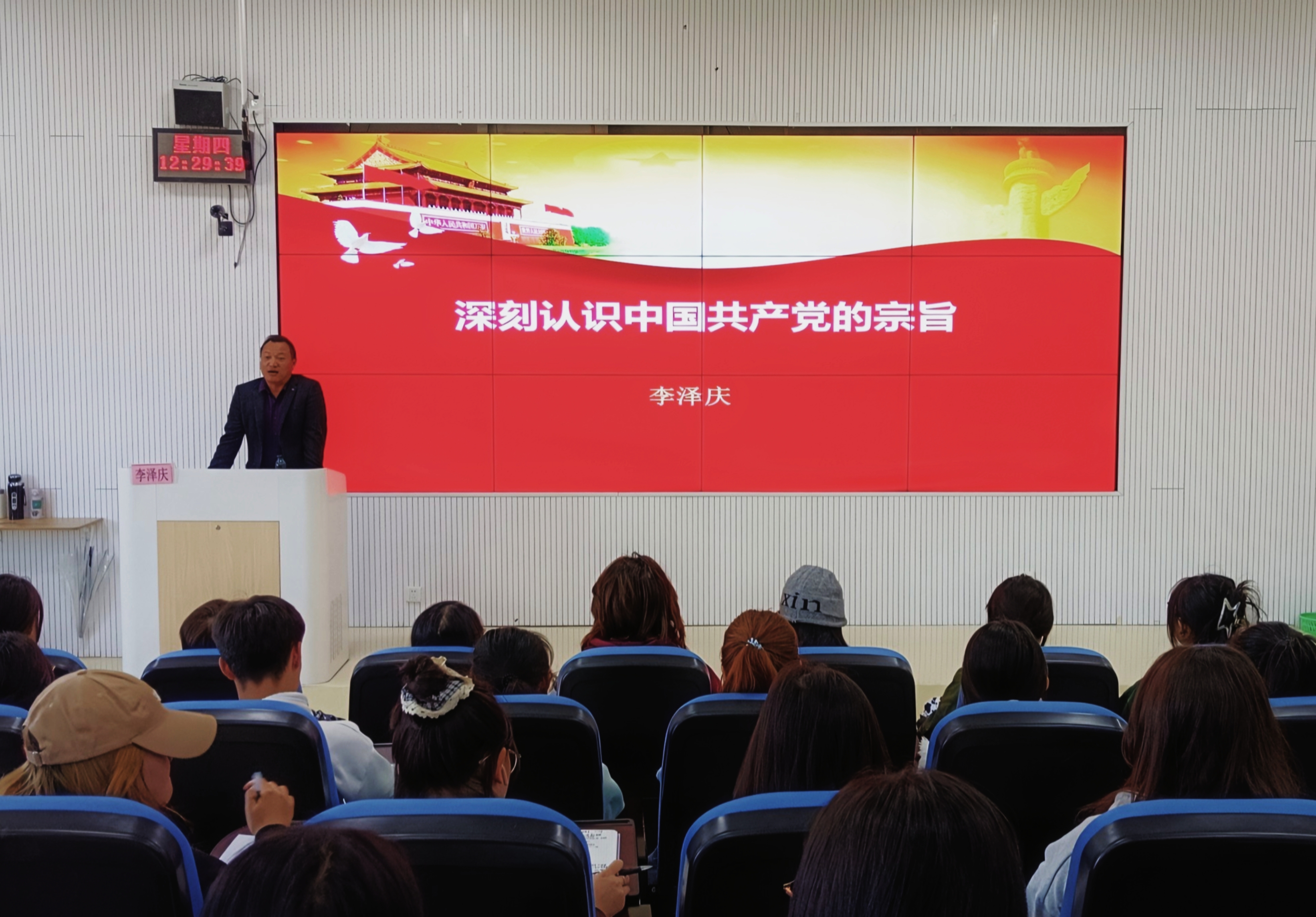 会上,李泽庆以“加入中国共产党的初心”为切入点,紧扣“中国共产党的宗旨”这一主题并结合实际案例,从党的宗旨是我们党正确认识和把握历史发展规律的结果、坚持党的宗旨是共产党员一切言论和行为的根本准则、积极向党组织靠拢,践行党的根本宗旨三个层面进行深入阐述。李泽庆强调,在场入党积极分子及各位党员要牢记党员身份,坚持党的宗旨,走得再远也不能忘记走过的过去,更不能忘记为什么出发,要在喧嚣中站稳脚跟。