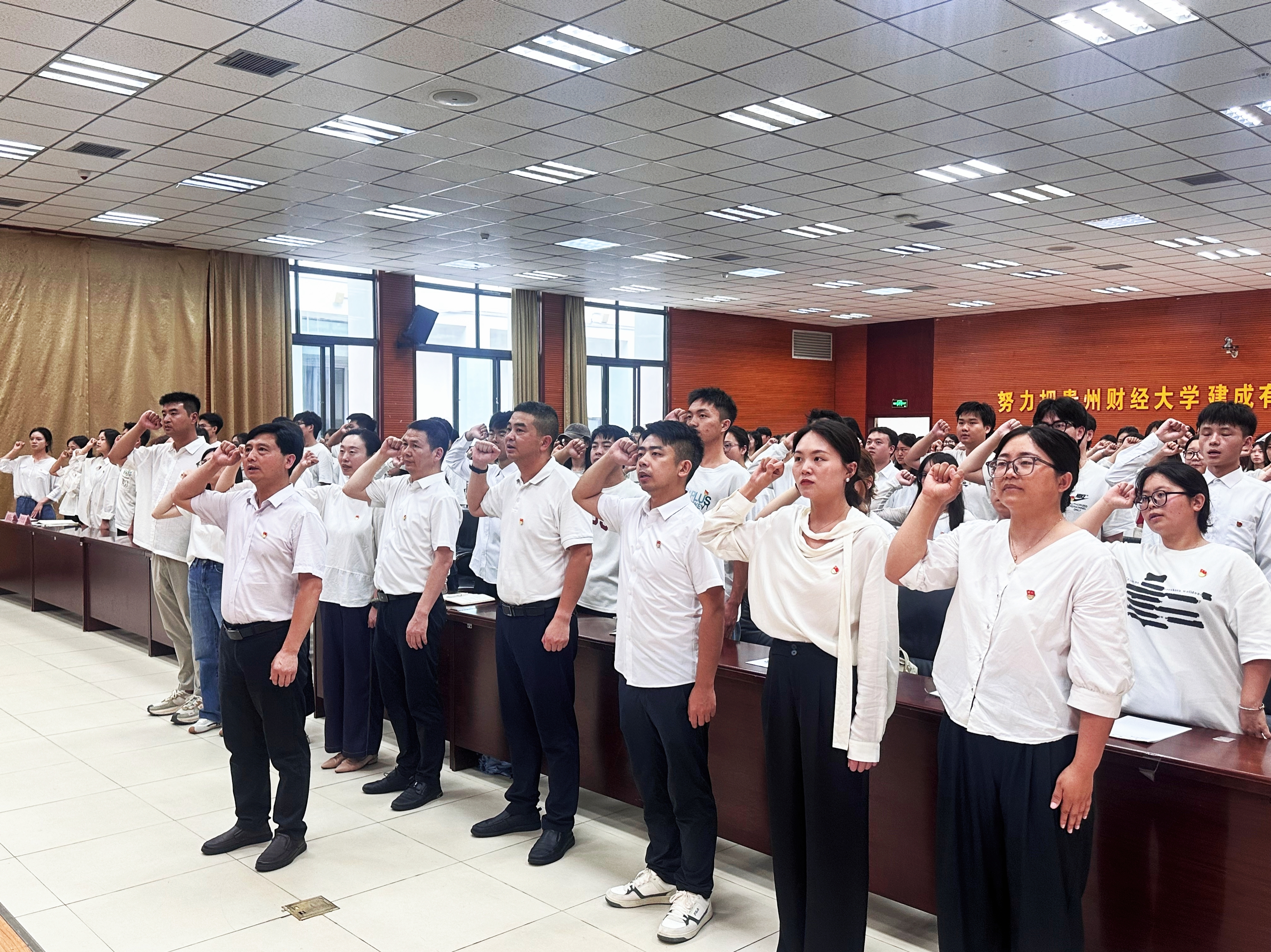 陈嵩宣读公司党委批复文件。公司领导和各员工党支部书记为新党员佩戴党员徽章并表示祝贺。随后,王治航带领全体党员面向党旗进行庄严宣誓。在激昂的宣誓声中,党员们以坚定的信念许下了对党和国家的忠诚承诺。