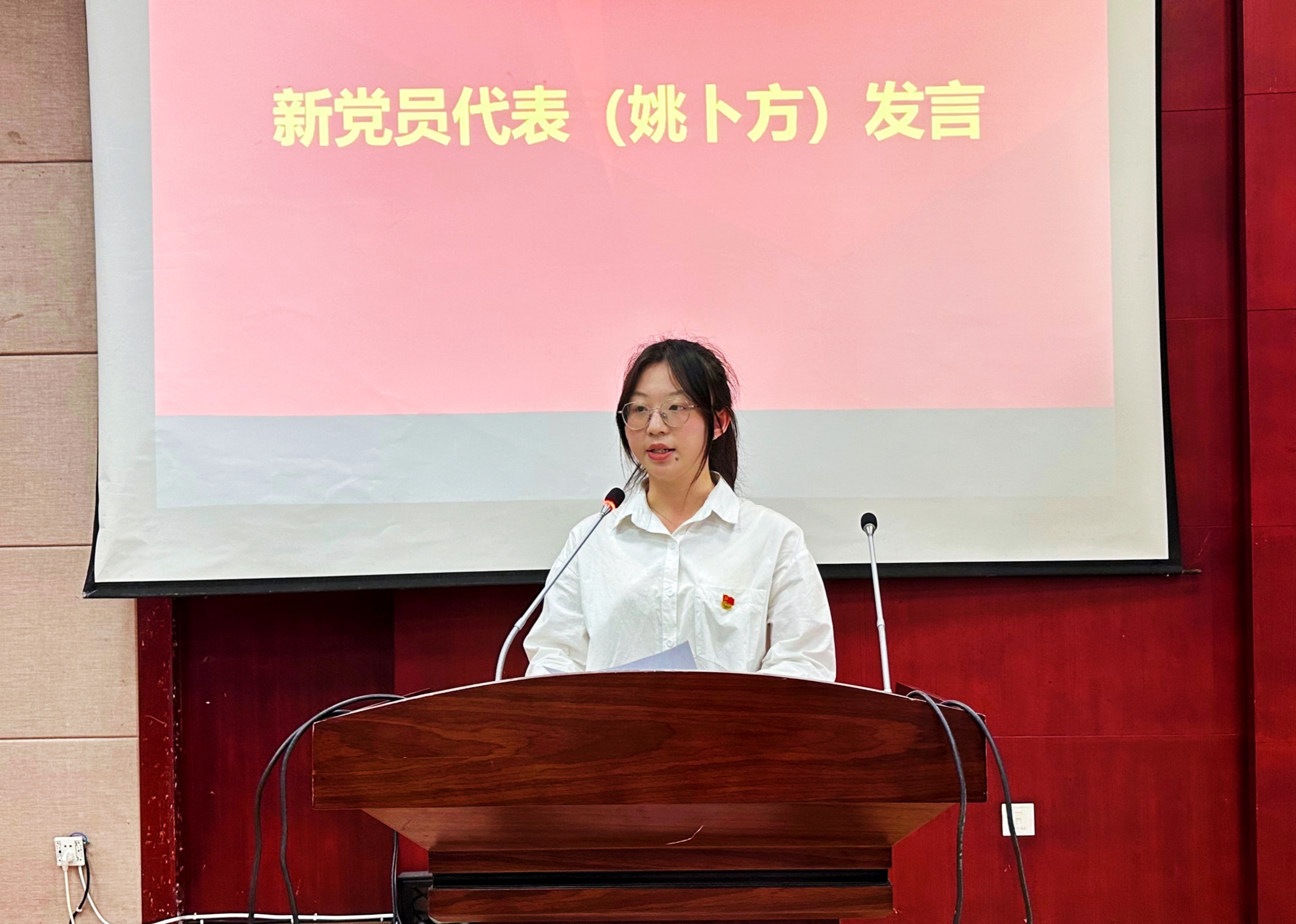 新党员代表姚卜方发言,表示自己将会把党的理想信念融入血脉,牢记初心使命主动担当作为,在实践中践行宗旨,始终以党员标准严格要求自己,为党和国家的事业发展贡献全部力量。