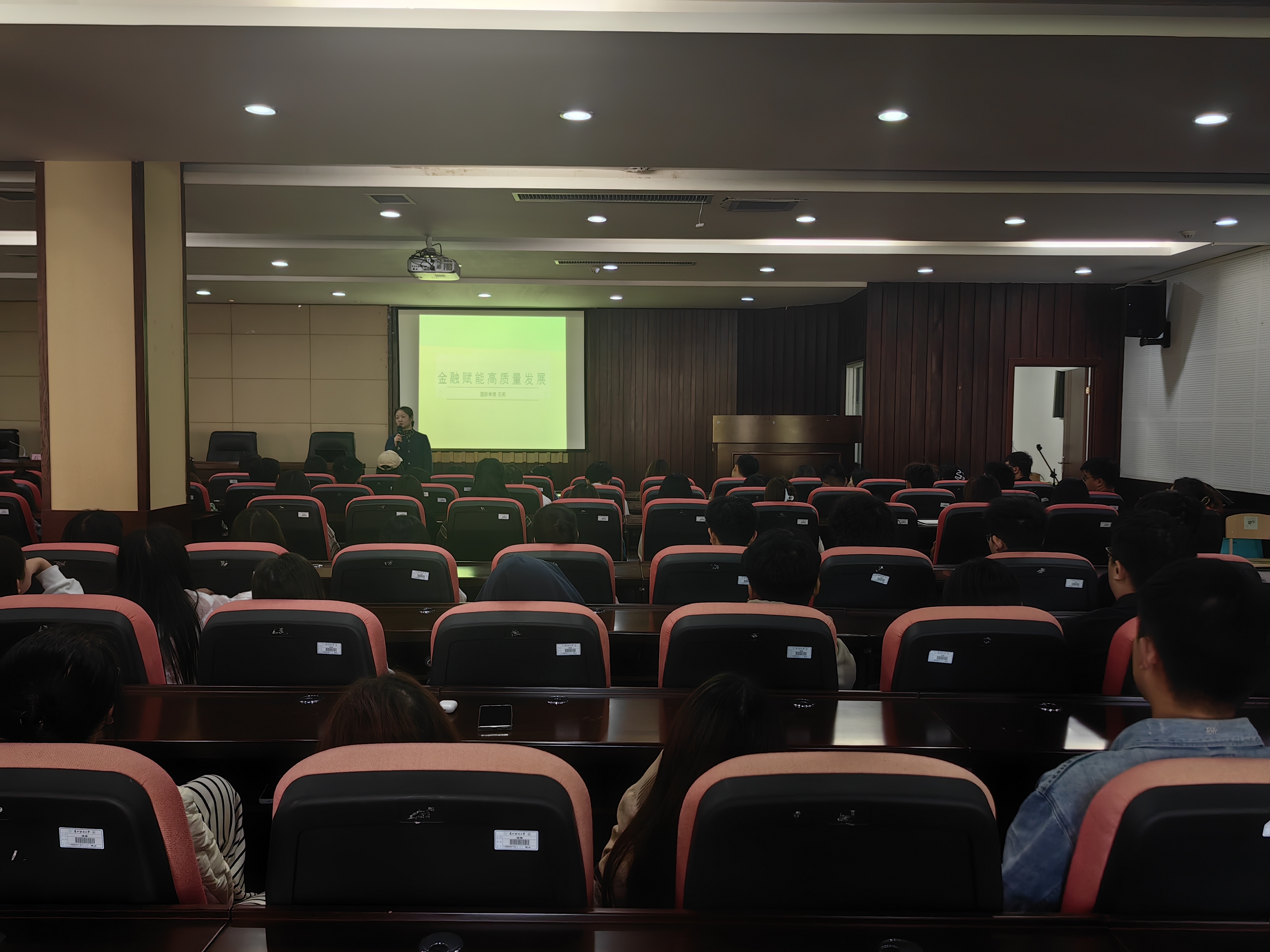 石莉首先介绍了自己的专业背景以及金融学专业学科背景,结合掌握了解的国家政策以及国内外金融体系引入此次讲座主题。从创新经济周期、中国经济高质量发展、金融赋能经济高质量发展、金融专业员工职业发展展望四个部分展开讲座,阐述了创新经济周期波动、经济增长方式转变、供给侧结构性改革等方面内容。肖启迪鼓励同学们通过聆听讲座强化对专业知识的系统理解能力,在学习中多思考,培养学术思维,提升学术能力。