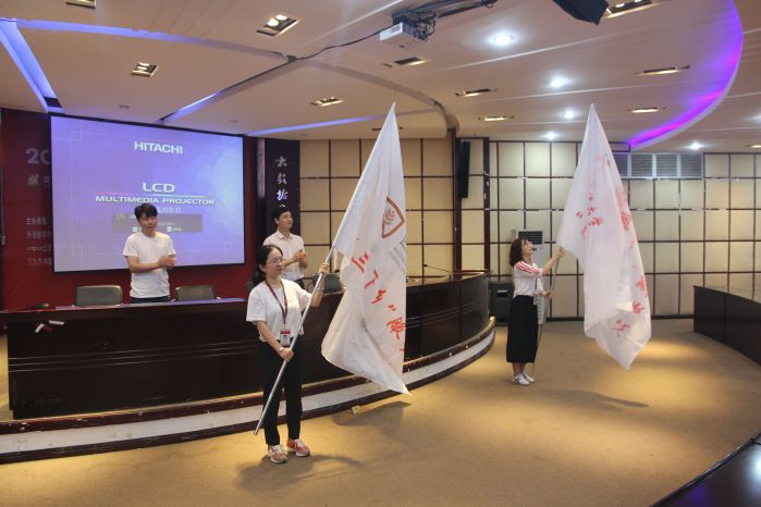 仪式最后王治航、王瑛授旗,吴靓甘珣两位老师接旗,此次出征仪式圆满结束,暑期三下乡社会实践活动也将正式启动。