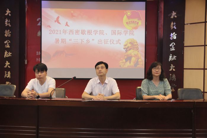 仪式全体师生齐声合唱《光荣啊,中国共青团》开始,首先由王治航致辞他强调在全国上下庆祝建党100周年的喜悦氛围中,公司开展的乡村振兴“三下乡”暑期社会实践活动意义更加重大,这既是引导公司青年学子在实践中学习贯彻习近平新时代中国特色社会主义思想的重要举措,更是“学党史、悟思想、办实事、开新局”的具体体现。同时,王治航就今年的暑期三下乡社会实践活动提出了四点要求:第一,要深刻认识社会实践的意义;第二,要牢牢树立“安全第一”底线思维,始终把安全工作放在首位;第三,要扎实服务,力求实效;第四,要注重活动的宣传、分享和活动成果的深化。