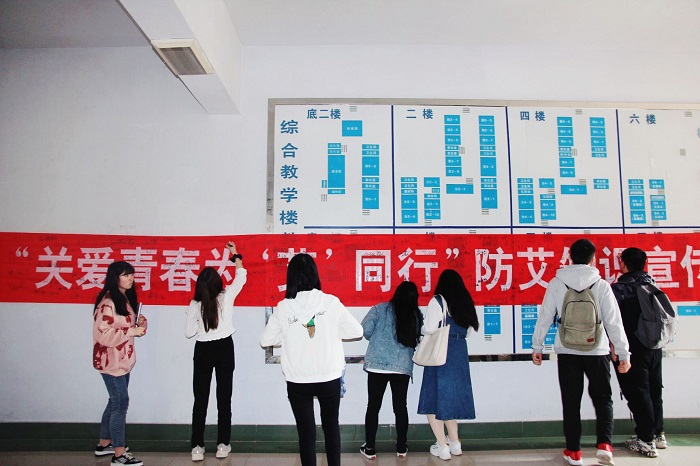 活动中,团委的员工干部们用幽默的语言、典型的案例对什么是艾滋病、艾滋病的流行趋势、艾滋病的传播途径及预防等作了详细的讲解,让同学切身感受到艾滋病现状的严峻性,同时也学到了艾滋病防控知识。在“防艾知识问答”活动环节中,同学们通过回答相关防艾知识题目,进一步了解了艾滋病的传播机制、病理组成和症状,提高了公司师生对艾滋病的防范意识。最后,员工干部们向参加活动的同学发放红丝带,同学们纷纷在签名墙上签名,表示将从自身做起,争做防艾宣传者,助力防艾宣传活动,为防艾宣传贡献青春力量。