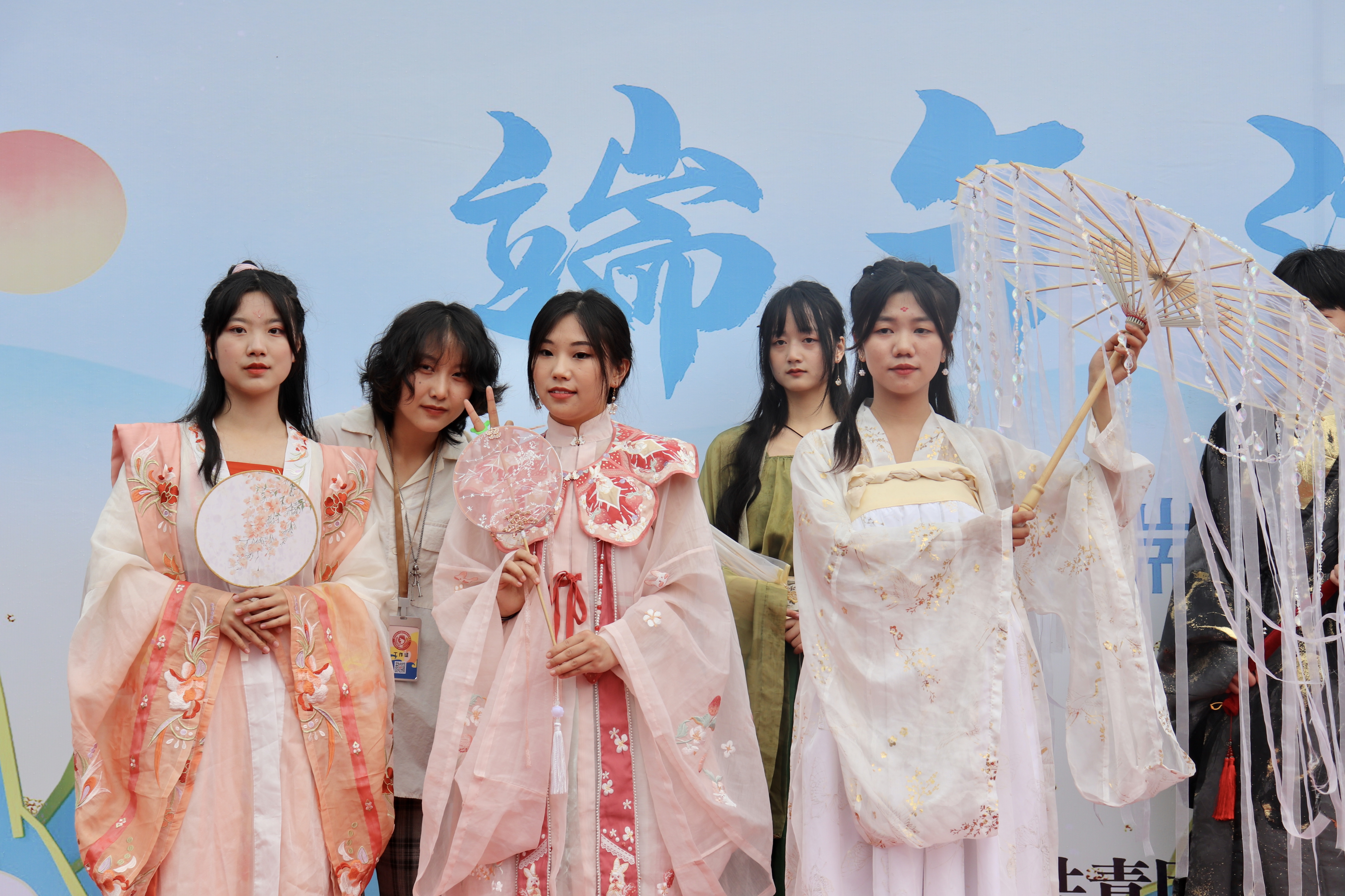 活动在汉服模特走秀中开始。员工们穿着中国古代各朝代服饰,在古典欢快的背景音乐下,意气风发走来。他们或执扇微笑、或撑伞前行,举手投足间尽显传统古韵美感,通过不同年代服饰与文化间的碰撞,尽现中华文明礼仪之美与青年老员工的朝气蓬勃。同时,“传统文化集市”也盛大开幕。同学们结合自身专业优势,在第二教学楼大厅设置剪纸、DIY纸盘贴画、手工香包、饰品兜售以及趣味游戏等摊位,为现场师生带来了不一样的端午体验。师生们欢聚一堂,在游园会中充分感受到了我国传统节庆的浓厚氛围。