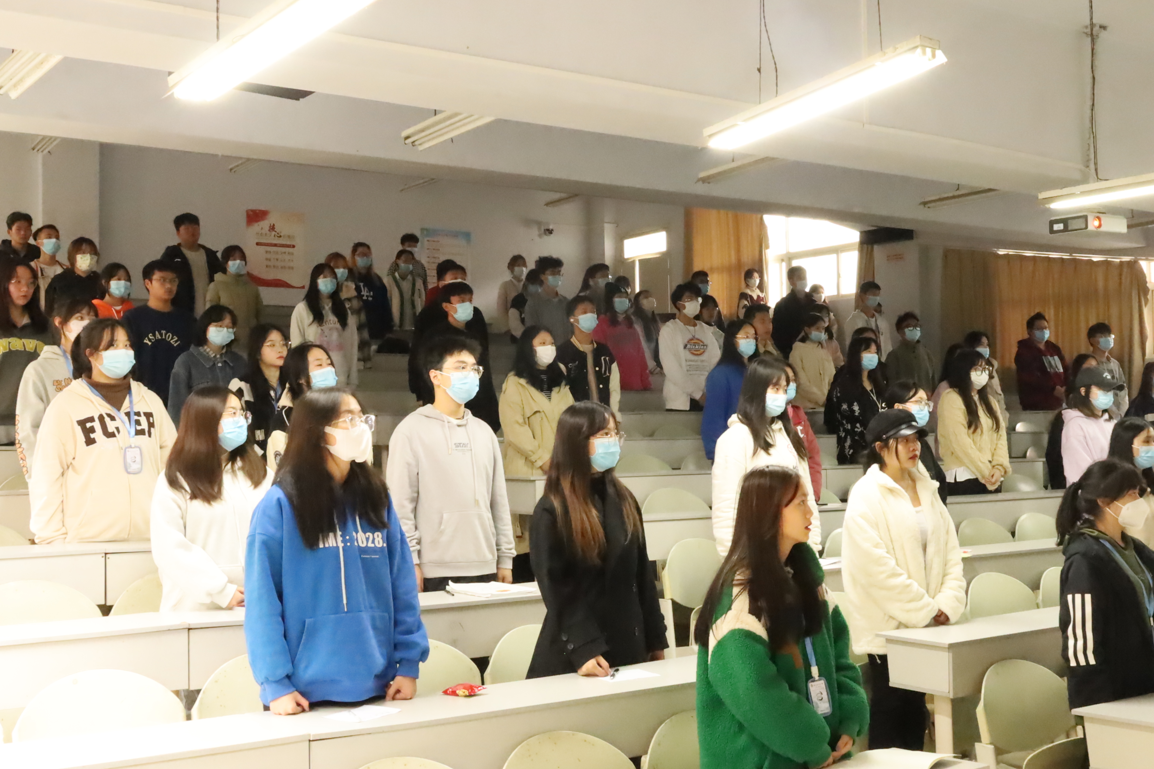 大会开始,全体人员起立,奏唱团歌。随后,团委组织文联部部长游中豫介绍了“学习二十大,永远跟党走,奋进新征程”主题团日活动安排。楼层团支部部长刘然新悦详细介绍了“智慧团建”系统、团组织关系转接流程等工作。青年马克思主义者协会部长陈珂伦讲解了《团支部工作记录本》的填写、使用规范及注意事项。