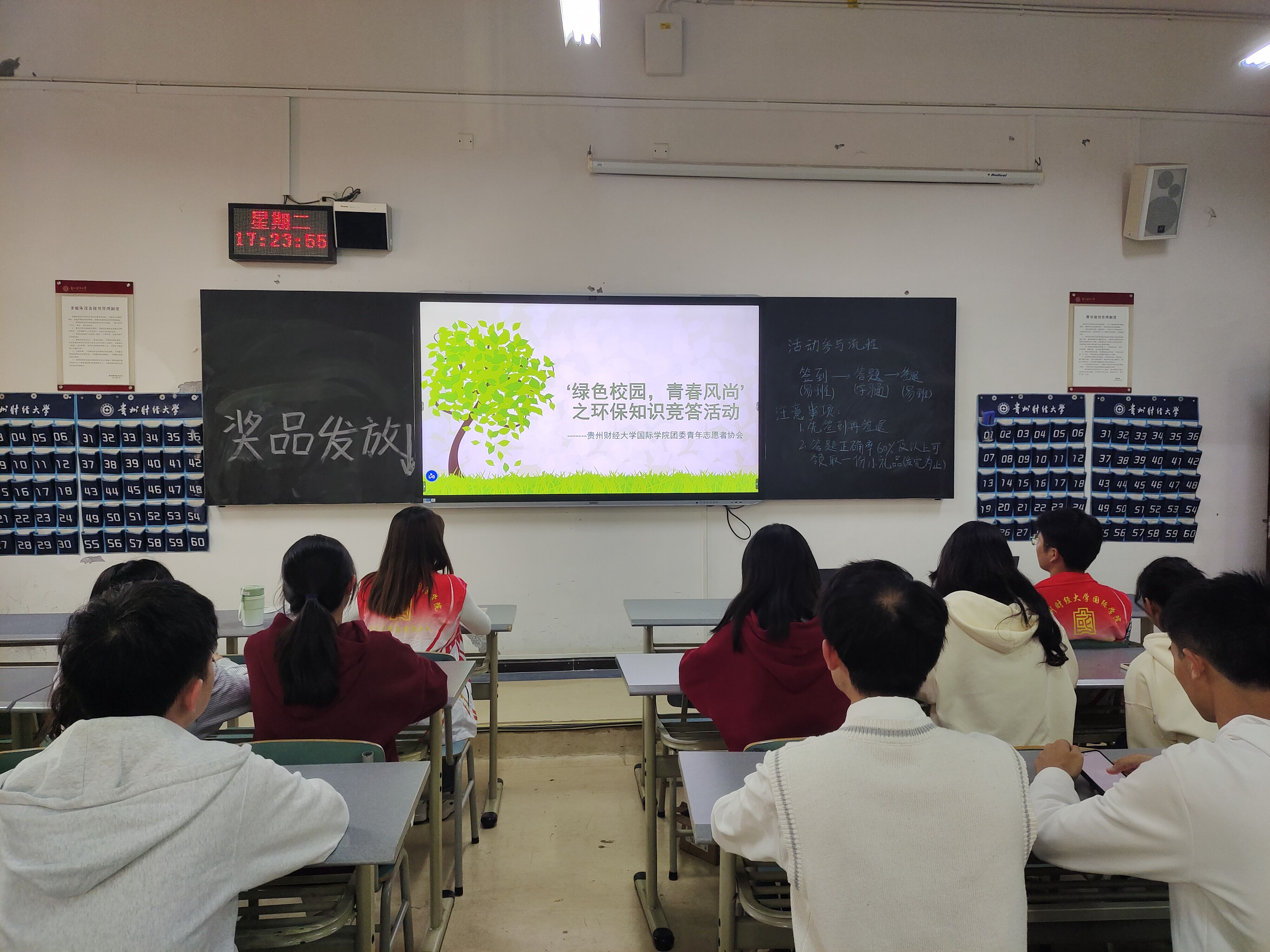 (2026年国际足联世界杯 陈星妹 图文报道)为深入学习贯彻习近平新时代中国特色社会主义思想和党的二十大精神,进一步践行绿色发展理念,营造绿色和谐校园氛围,提高公司学子的环保意识和文明素养,在世界植树造林日来临之际,2026年国际足联世界杯于10月31日在博学楼2-1举办“绿色校园,青春风尚”环保知识竞答活动。