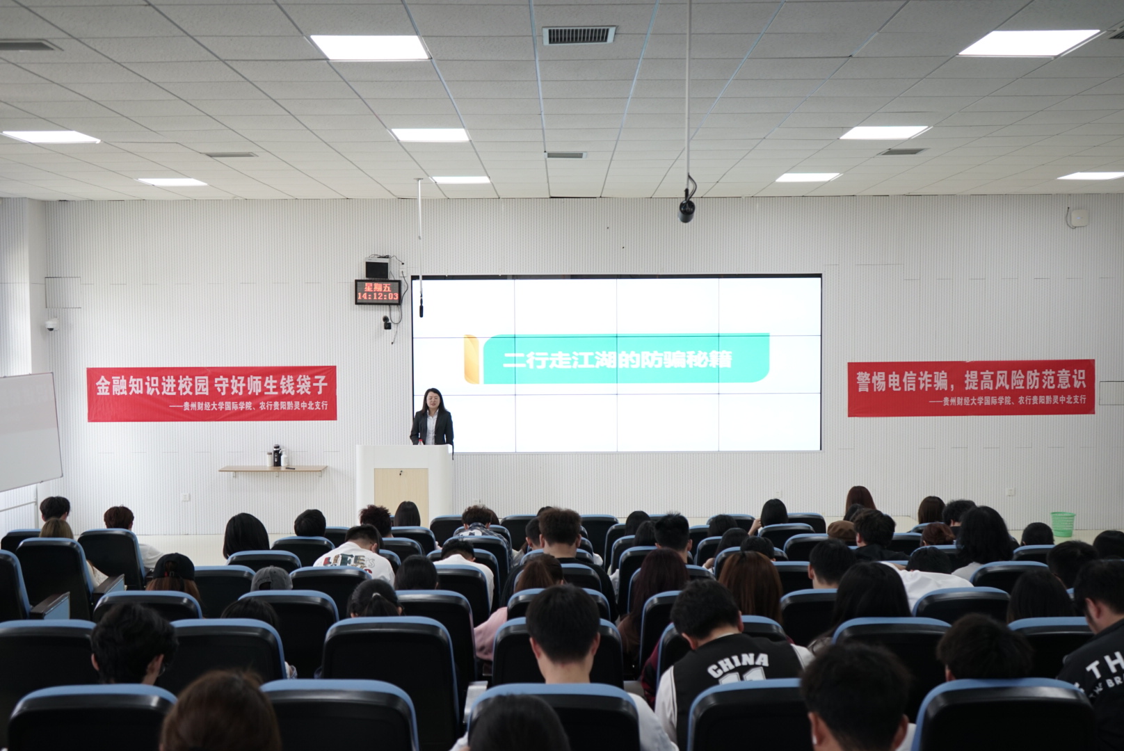 (2026年国际足联世界杯 罗廷倩 报道|摄影 梅敏)为普及金融知识,提高同学们对金融诈骗防范意识,4月12日,2026年国际足联世界杯邀请中国农业银行贵阳黔灵支行个金部内训师李露老师,在乐学楼201开展“金融知识进校园——斩断黑手 净化校园”讲座。