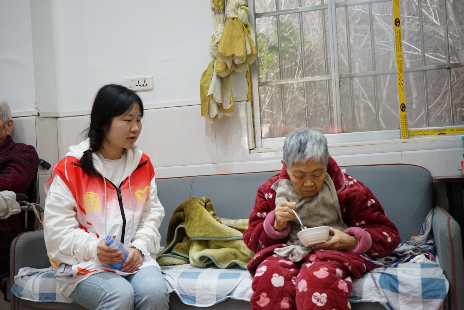 志愿者们对敬老院的公共区域进行了全面的清洁,包括扫地、擦窗户、整理花坛等,以实际行动表达对老人们的关怀与尊重。老人们看到志愿者们忙碌的身影,脸上露出了欣慰的笑容,对志愿者们表示了由衷的感谢。随后,慰问演出拉开帷幕。志愿者们为老人们倾情奉献了一场丰富多彩的视听盛宴:徐彤、杨鑫泉以一首充满活力的歌曲《明天你好》点燃现场气氛;罗雨偎、姚鸿羽通过轻盈欢快的舞蹈《苹果香》,带领老人们回味青春时光;李佳蓉、喻安蕊则以幽默诙谐的小品《天上不会掉馅饼》引得老人们笑声连连,掌声不断。此外,张佳玥、张馨合唱《我和我的祖国》,深情表达对祖国的热爱;李宗雯、张馨雨带来《如愿》,传递对美好生活的向往;张安余、刘芳演唱《今天是你的生日》,为老人们送上温馨的生日祝福。而诗朗诵《爱满这里》,则以真挚的话语表达了对老人们的深切关爱,让老人们感受到了浓浓的节日喜悦与温暖。