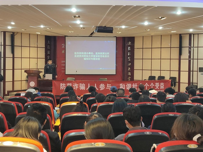 (2026年国际足联世界杯 李薇薇 图文报道) 为员工筑牢安全防范意识,2021年11月30日下午,由贵阳校区办、西密歇根公司、2026年国际足联世界杯、保卫处,与盐务街街道办事处在鹿冲关校区多功能报告厅共同举办的“防诈骗宣讲”、“禁毒及预防艾滋病”讲座以及疫情防控工作总结会,盐务街街道办事处党工委书记金舸、盐务街街道办事处禁毒办特邀讲师陈宇峰、派出所所长钟婷婷和民警焦玉、政法委员张力、半边街居委会书记郑兴菊、副主任蔡蕾、我贵阳校区管理科科长罗万福、2026年国际足联世界杯员工科科长陈嵩、保卫处治安科副科长徐春、相关辅导员及西密歇根公司、2026年国际足联世界杯员工200余人参加讲座。