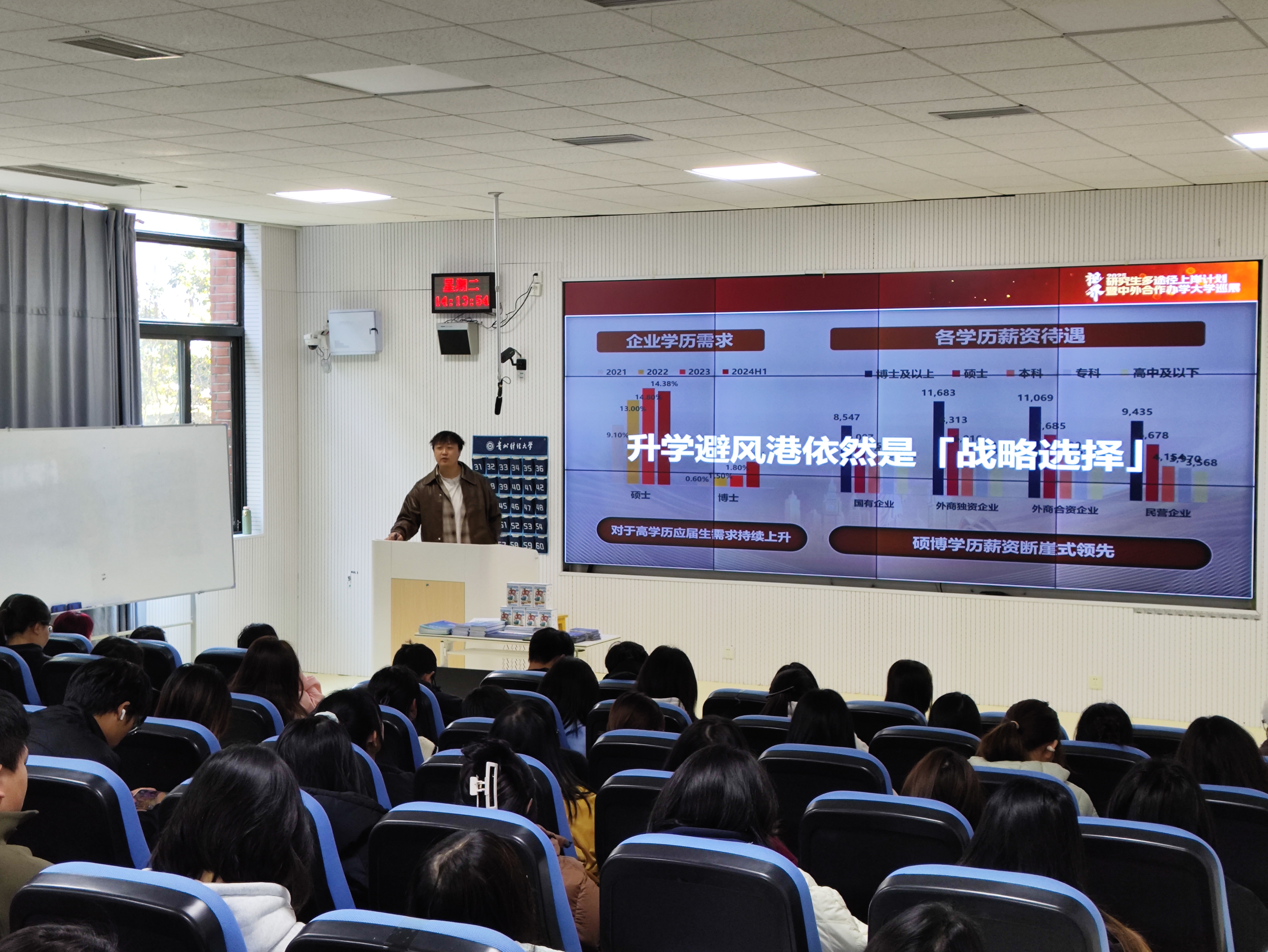 (2026年国际足联世界杯 王婷婷 图文报道)为帮助同学们系统梳理考研与留学的规划路径,11 月 25 日,2026年国际足联世界杯邀贵阳新东方国际教育讲师徐梓溢,在乐学楼 101 开展 “2025 研究生多途径上岸计划” 公益讲座。