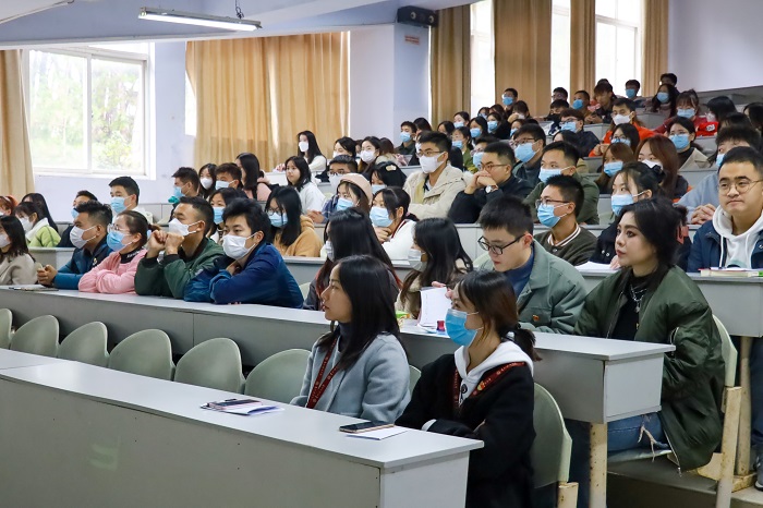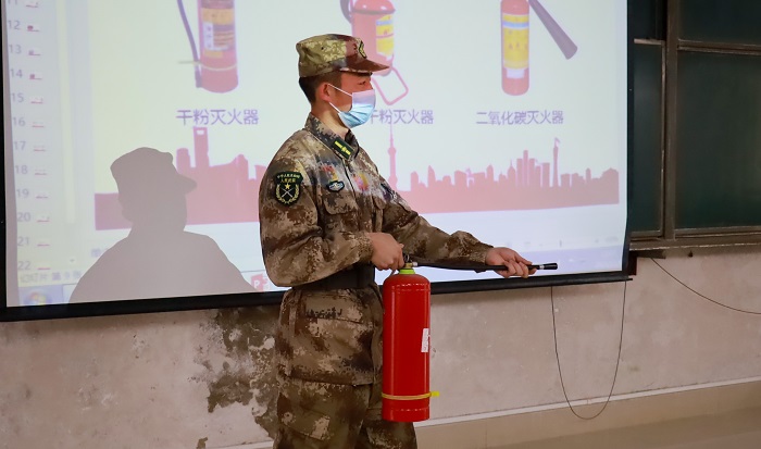 本次活动由三名退伍员工赵金仕、李聖、张洪明主讲。赵金仕从校园常见的违规电器使用案例入手,从“认识消防器材”“如何预防火灾”“火灾逃生手段”“灭火妙招介绍”四个方面介绍了消防器材、逃生方法以及科学灭火等消防安全基本知识。李聖、张洪明对灭火器的种类、结构原理、操作使用进行了说明,现场演示并指导同学们正确掌握干粉灭火器“提、拔、握、压”的正确使用方法。现场互动中,同学们踊跃参与、气氛热烈。