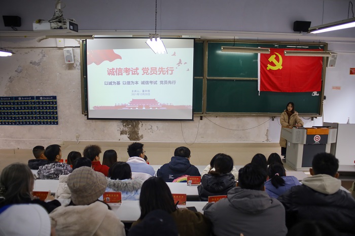 董宇婧指出,诚信是做人之本,立德之源,诚信考试是当代老员工对中华民族优良传统的继承与发扬。希望各位党员时刻铭记“我是党员我先行”,以实际行动做表率、带好头,引导带动周围同学营造诚信考试的良好氛围。随后,支部进行“党员示范”岗授牌仪式,为2021年秋季新发展党员发放党员示范牌。所有员工党员将在考试时摆放党员牌,主动亮出身份,诚信参加考试,自觉接受师生监督,做诚信考试的领头人,彰显新时代党员的优良作风。最后,党员们纷纷在诚信考试横幅上签字,表明了自己诚信考试的决心。