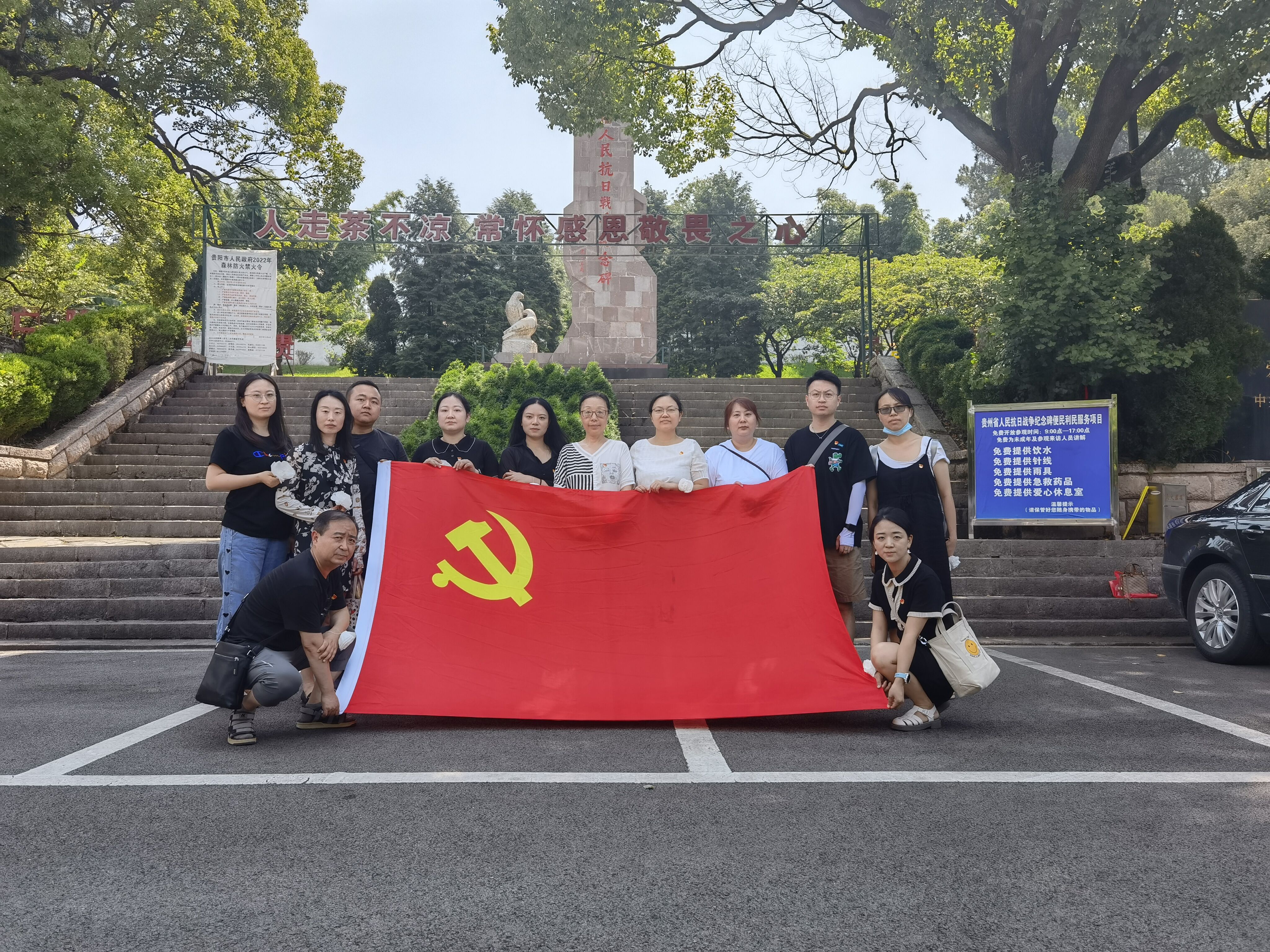 党员们来到海天园贵州人民抗日战争纪念牌和贵州革命英烈纪念碑前,向革命先辈们深情瞻仰,鞠躬、静默,并献上党员们亲手制作的小白花,深切缅怀革命先烈的崇高精神和不朽伟业,接受心灵的洗礼。