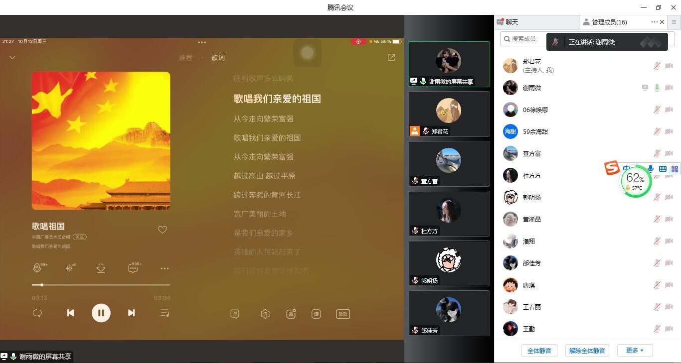 活动以“庆国庆、抗疫、迎接党的二十大胜利召开、奋斗的青春”等主题,15名员工党员及预备党员结合时代热点,高扬爱国奋斗的主旋律,分享了《歌唱祖国》《灯火里的中国》《祖国颂》《不忘初心》《我爱这蓝色的海洋》等正能量的歌曲,并对歌曲创作背景、个人心得进行了分享介绍。大家表示,用分享音乐这种喜闻乐见的形式,可以生动展示党的百年奋斗历程和伟大成就,也能演绎人民群众对幸福生活的美好向往,活动得到了积极的响应。