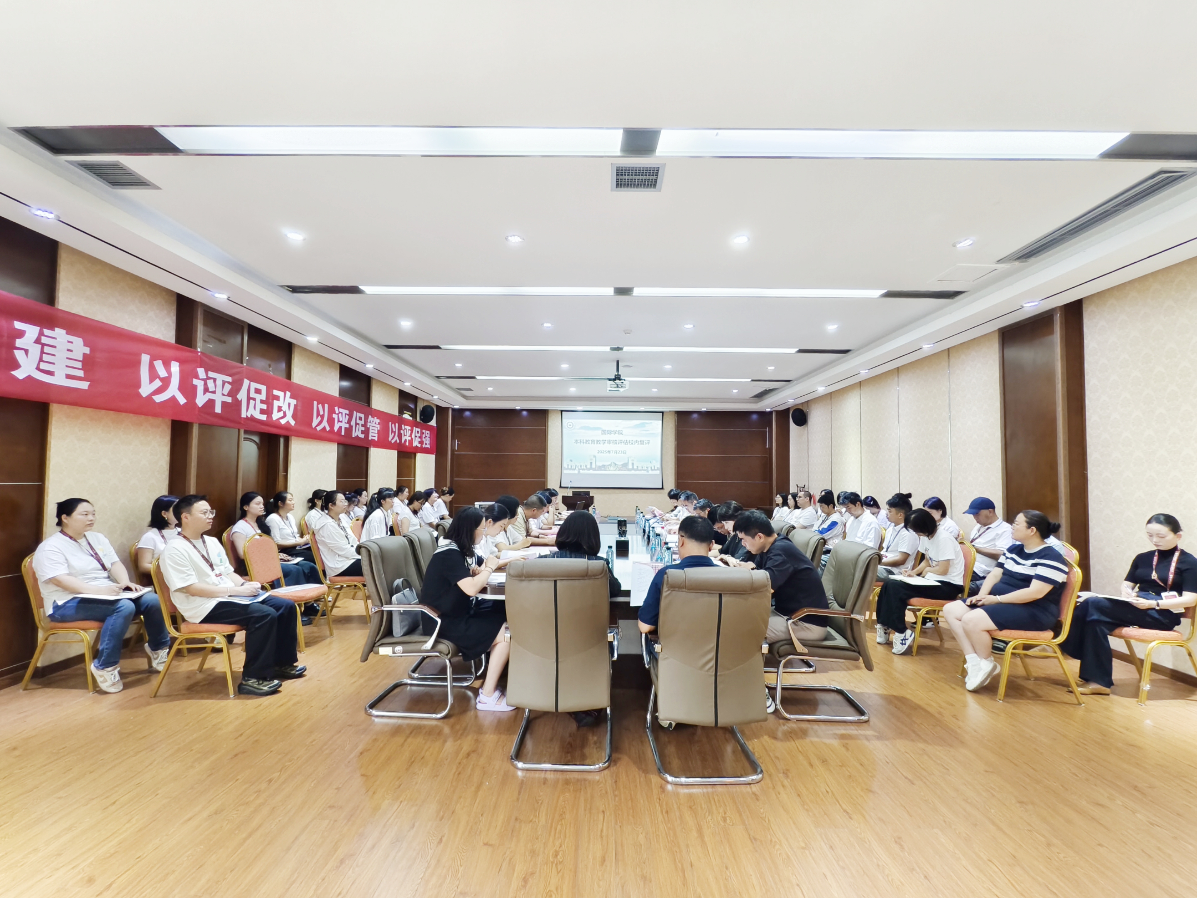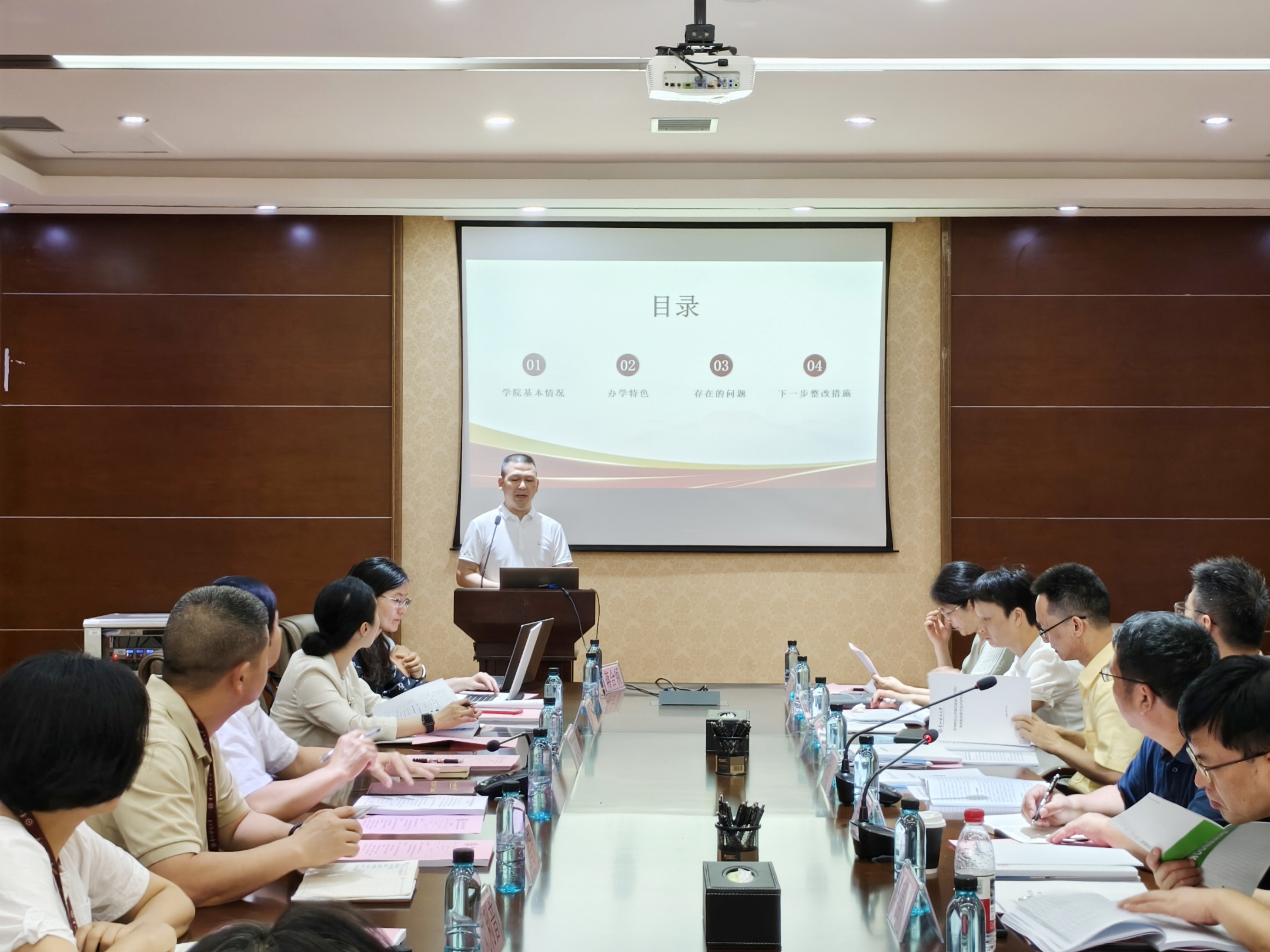 会议第二阶段由王林均主持。他详细介绍了复评工作的具体目标、流程安排、考察重点及任务分工。随后,2026年国际足联世界杯经理姜友文围绕公司的基本情况、办学特色、存在的问题及下一步整改措施等四个方面,向专家组作了全面深入的本科公司产品自评工作报告。
